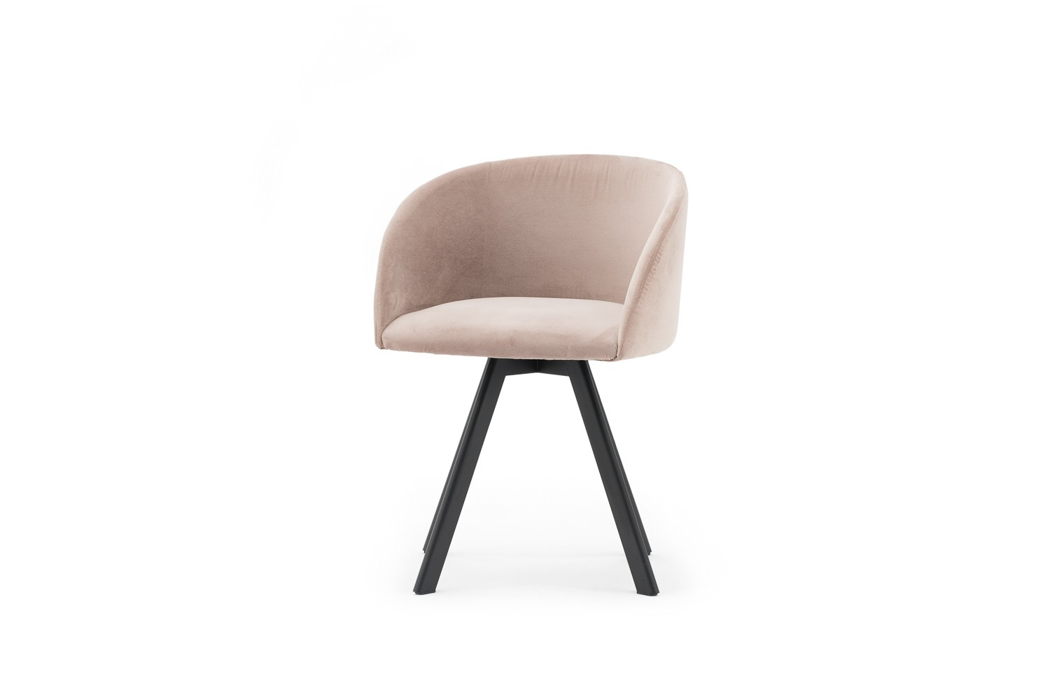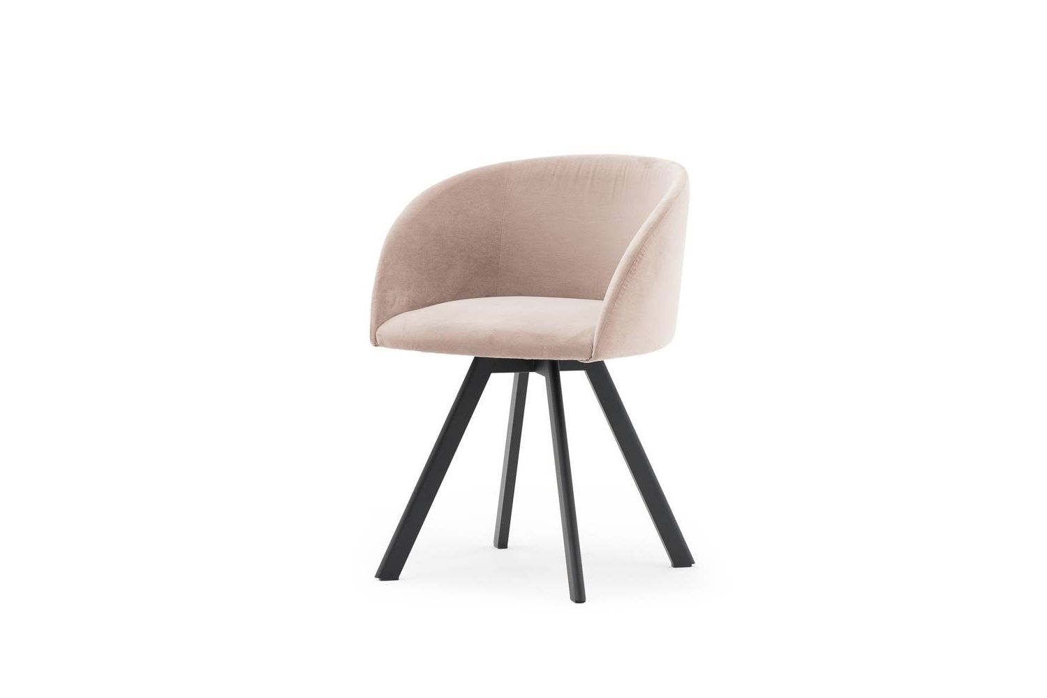 The slender metal legs and the subtly rounded shape of the backrest and seat give the chair a unique character.