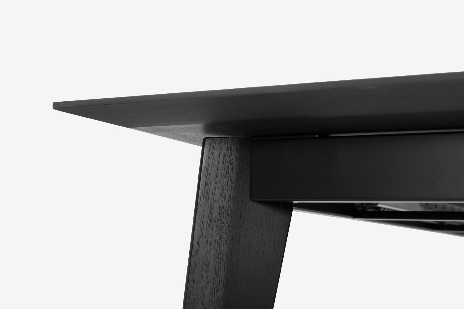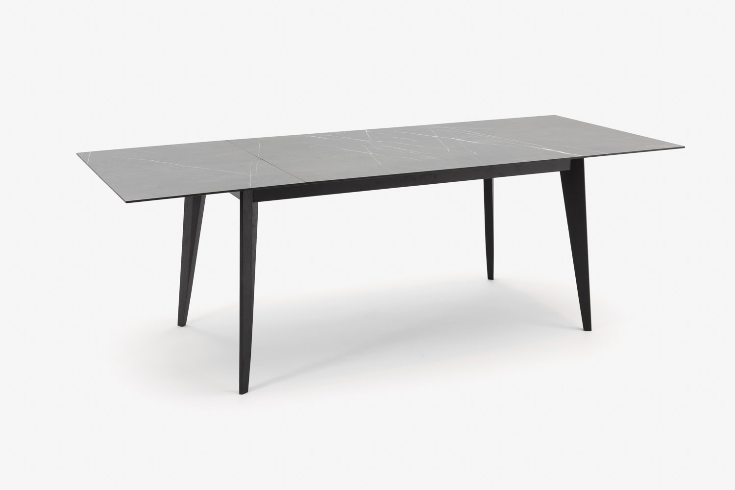 The table can be extended by adding a 60 cm extension to the centre of the table top.