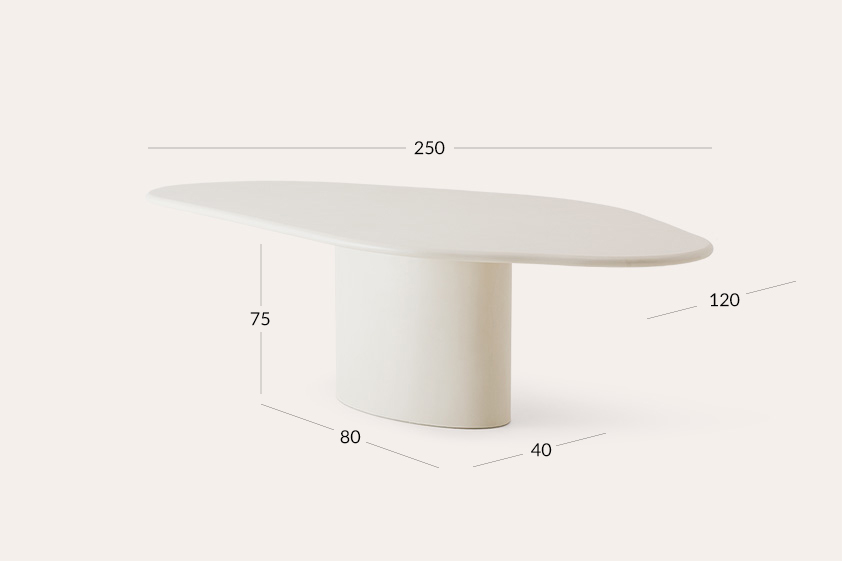 The table is 250 cm long and 120 cm wide, making it a large and practical piece of furniture for the dining room.