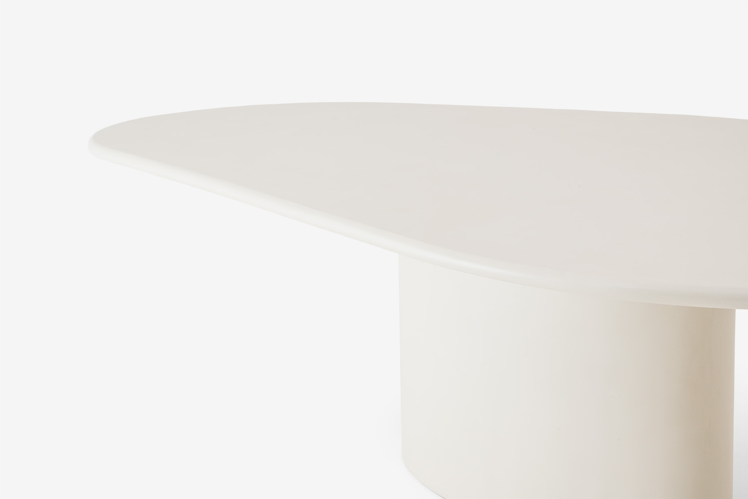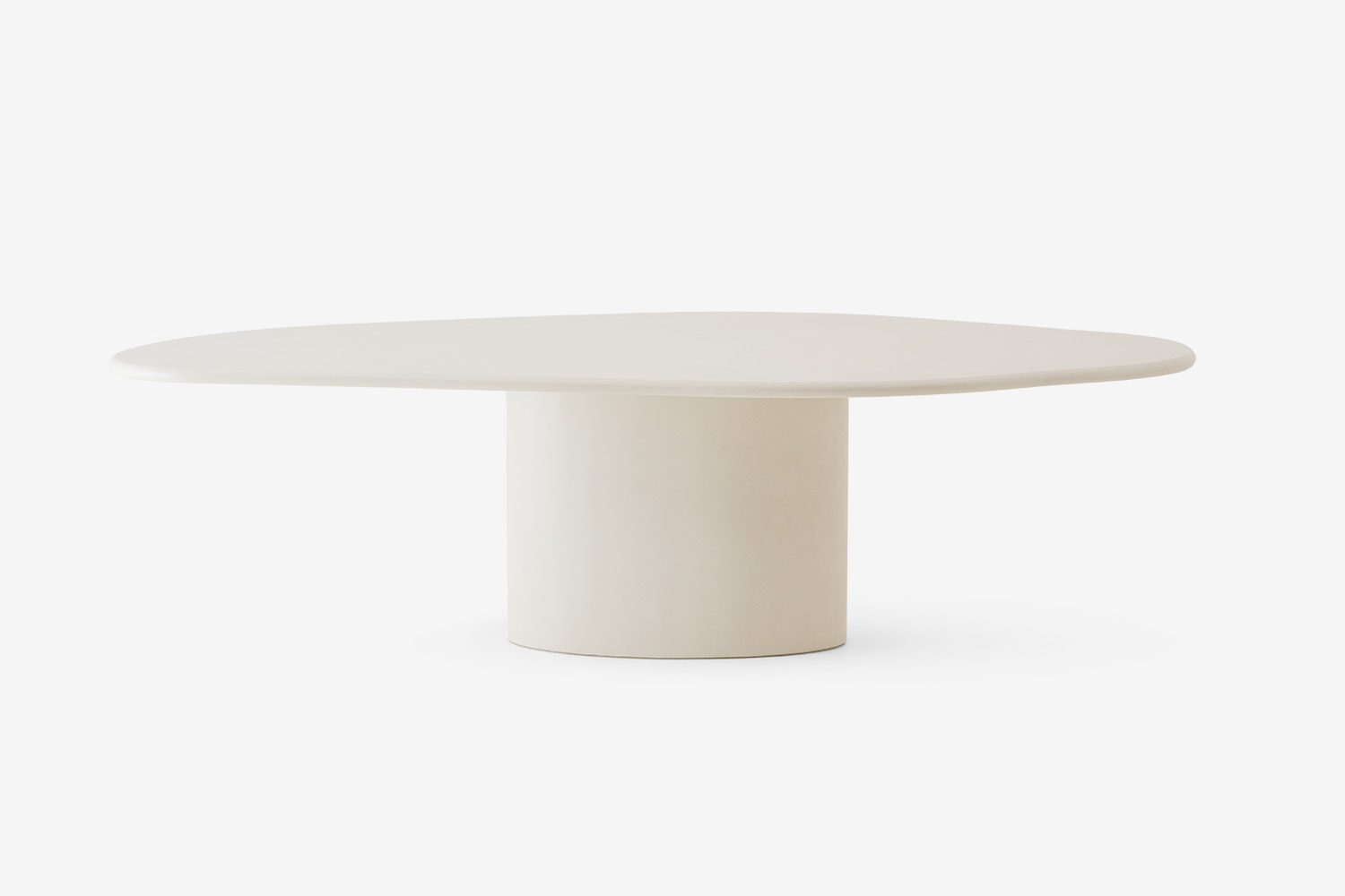 The irregular shape of the tabletop is reminiscent of organic, natural forms and lends a touch of whimsy to the interior.