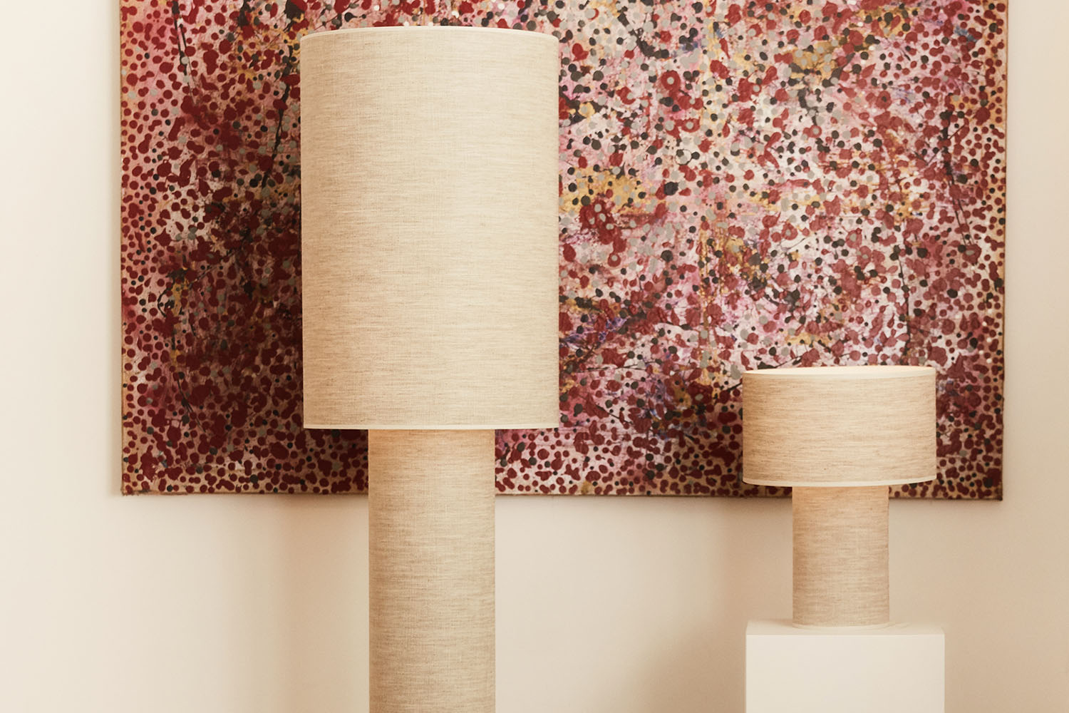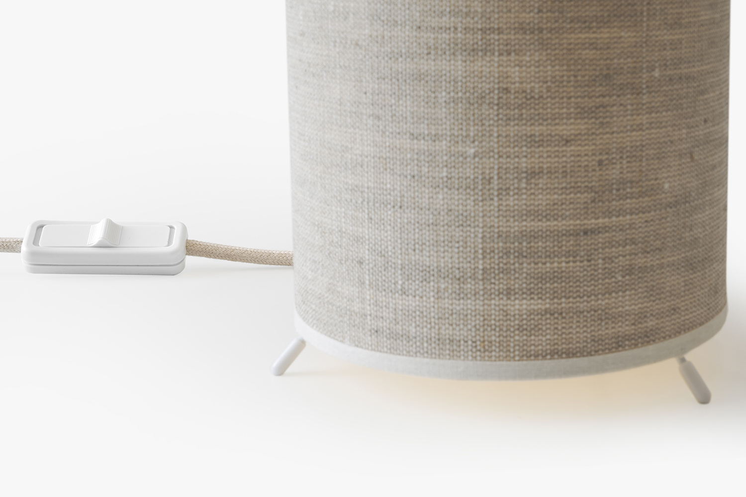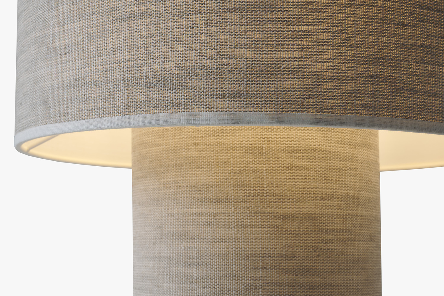 Materiał: len, lampa składające się z abażurowej podstawy i abażura górnego z lnianą przykrywką