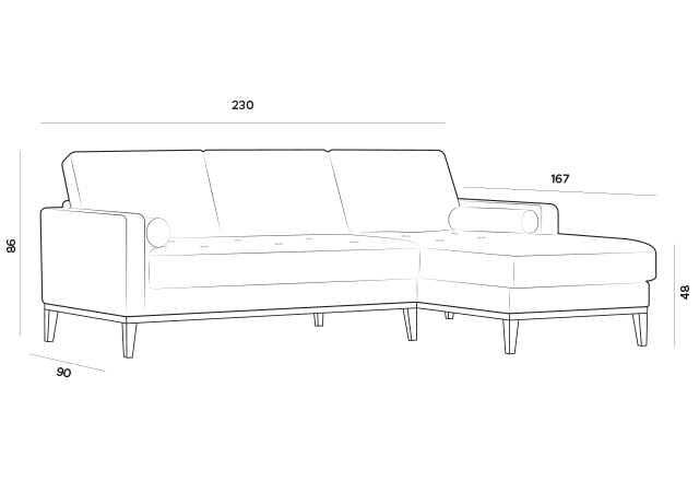 Charakterystyczne pikowanie i klasyczne przeszycia nadają narożnikowi elegancki charakter, przełamując subtelnie skandynawską surowość. Dopełnieniem całości są dwie poduszki w kształcie wałka które ocieplają wygląd i są niezwykle komfortowe.