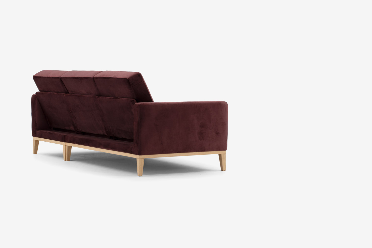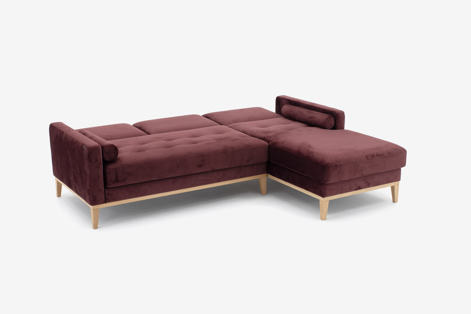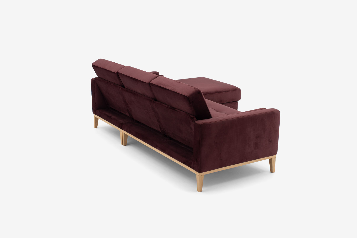 Nogi oraz podstawa narożnika są wykonane z drewna, a dzięki ich wysokości, sprzątanie pod meblem jest łatwe i przyjemne. Ta funkcjonalność bardzo korzystnie wpływa na prostotę codziennego użytkowania ale również dodaje mu elegancji.
