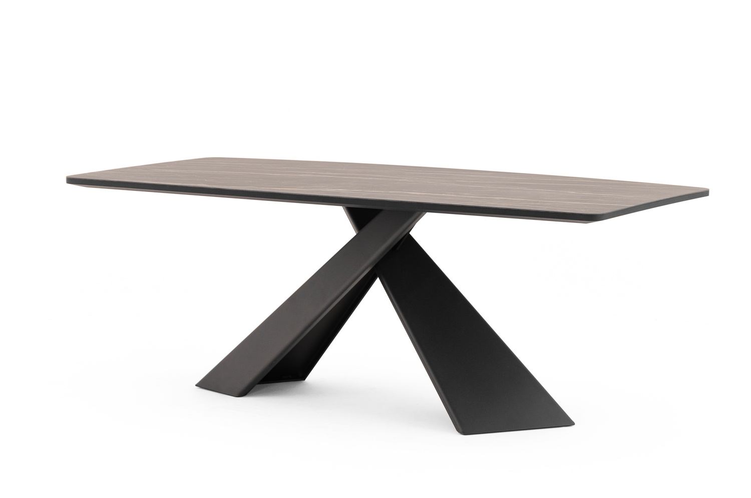 Metalowe, ukośne nogi stołu wyróżniają go wśród innych dostępnych na rynku. Nowoczesny design mebla nadaje mu lekkości i powoduje, że idealnie wpasuje się on we wnętrze urządzone w każdym stylu.