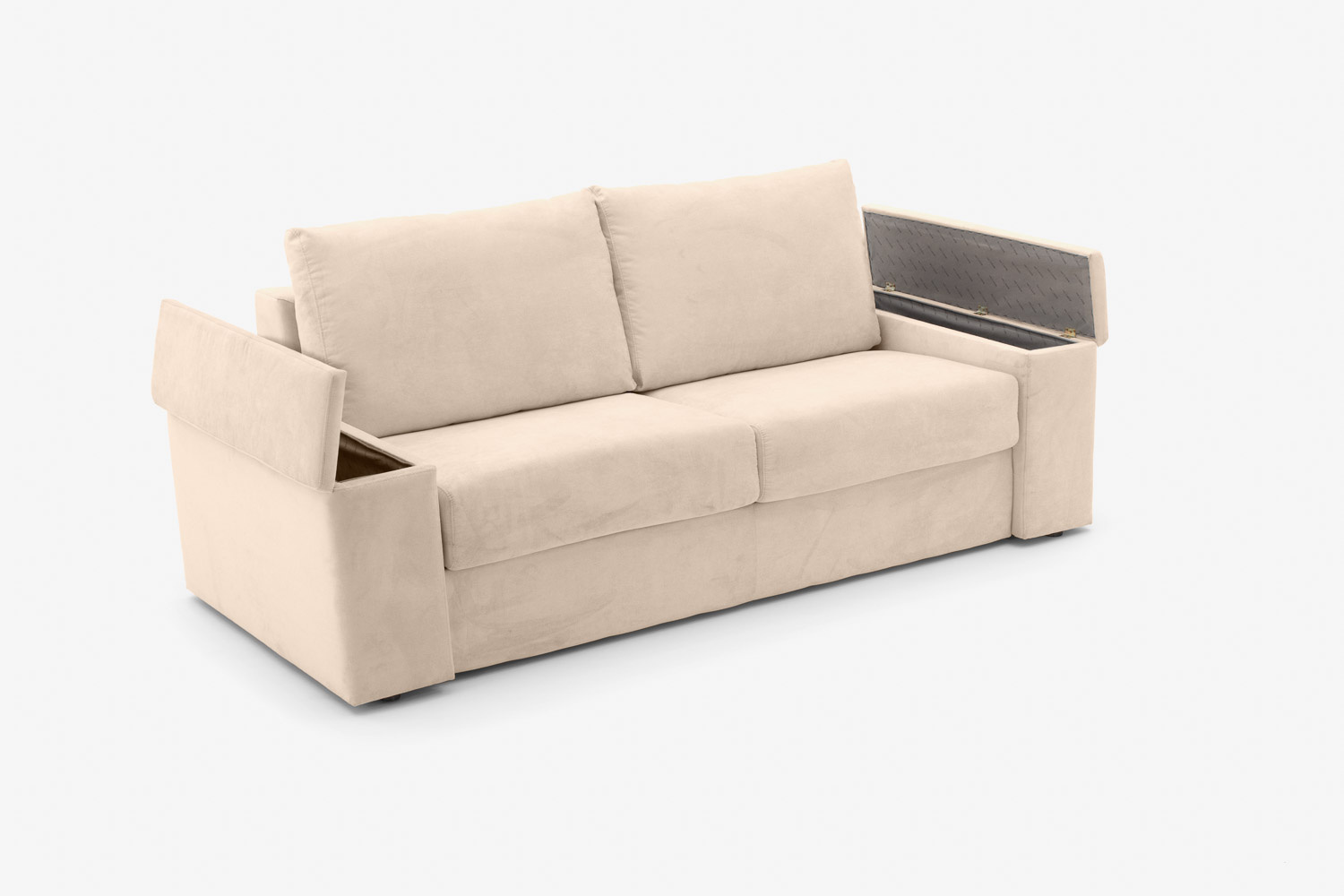 W systemie włoskim powierzchnia do spania rozkłada się zaledwie za pomocą jednego ruchu ręki. System umożliwia komfortowy odpoczynek na materacu wypełnionym pianką wysokoelastyczną, stworzonym z myślą o jak najwygodniejszym zasypianiu.