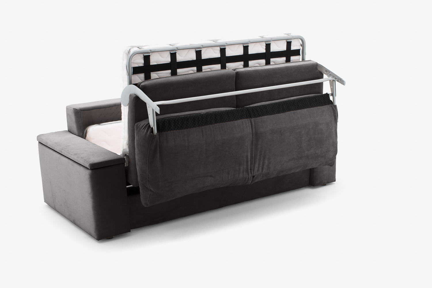 W systemie włoskim powierzchnia do spania rozkłada się zaledwie za pomocą jednego ruchu ręki. System umożliwia komfortowy odpoczynek na materacu wypełnionym pianką wysokoelastyczną, stworzonym z myślą o jak najwygodniejszym zasypianiu.