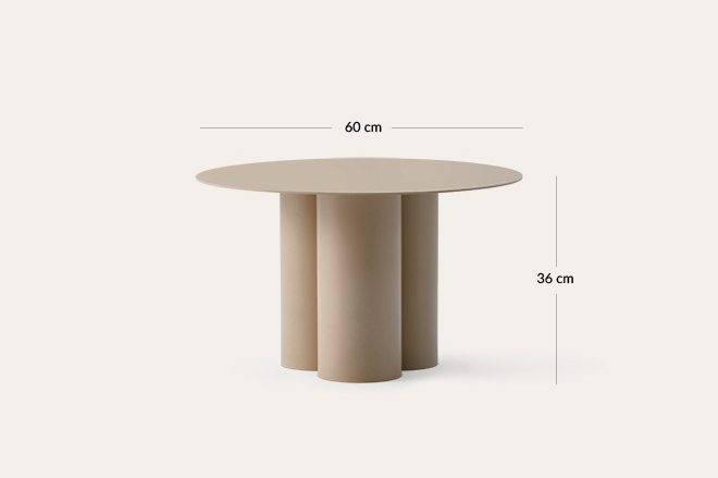 - Metalowy stolik BELL w kojącym odcieniu Grey Beige to lekka forma w minimalistycznym wydaniu. Okrągły blat i trzy obłe nogi płynnie łączą się w jedną, nieoczywistą całość.