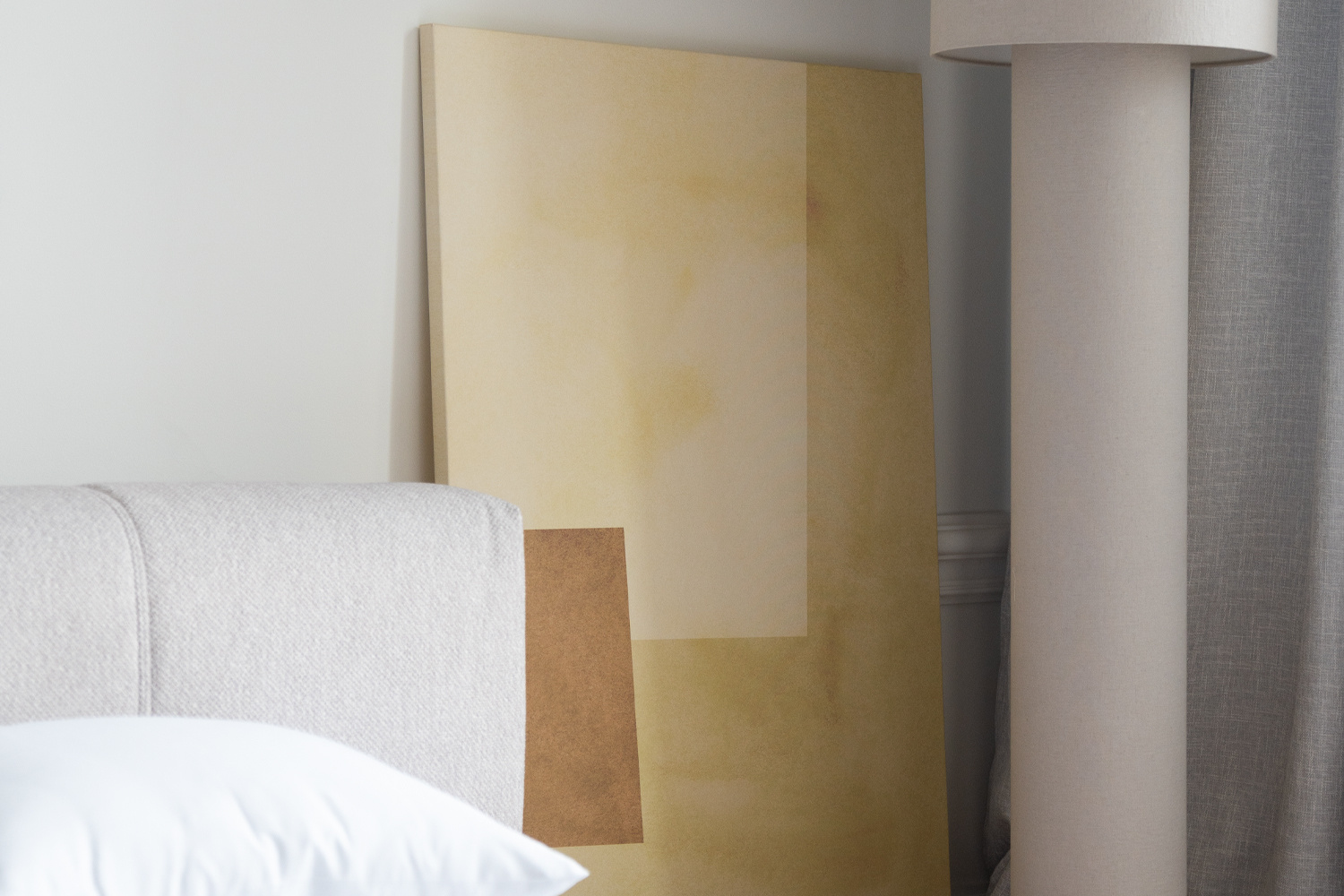 • BLURRY jest jak promień słońca, który zapomniał, że jest światłem i postanowił zostać sztuką. Ciepłe odcienie wędrują po płótnie w towarzystwie prostych form – prostokątów i linii.
