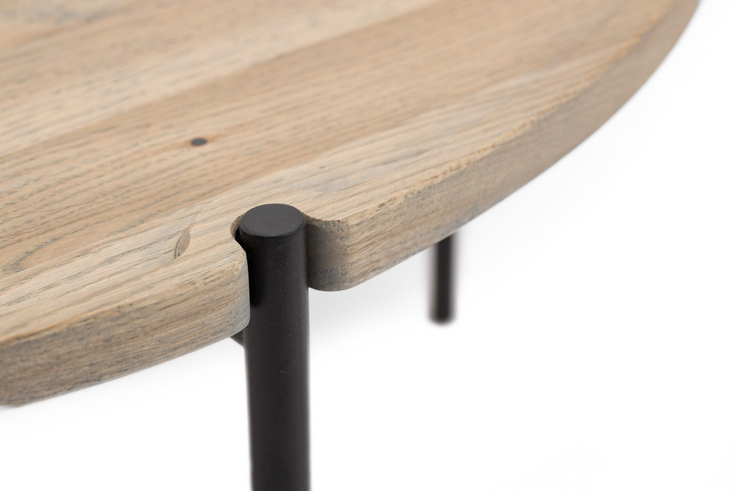 Blat stolika jest wykonany z litego dębu i pokryty naturalnym olejowoskiem. Tak zabezpieczone drewno jest gwarancją wysokiej wytrzymałości stołu, co przekłada się na jego długotrwałą funkcjonalność.