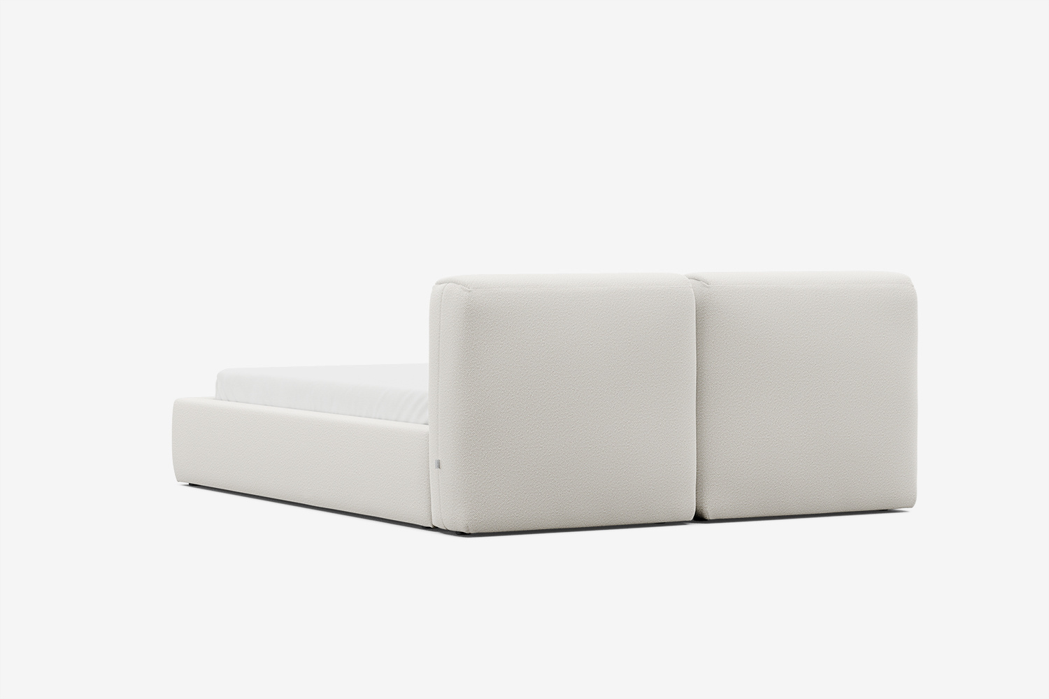 Łóżko jest obite tapicerką również w tylnej części wezgłowia, co pozwala na umieszczenie go na środku pomieszczenia.