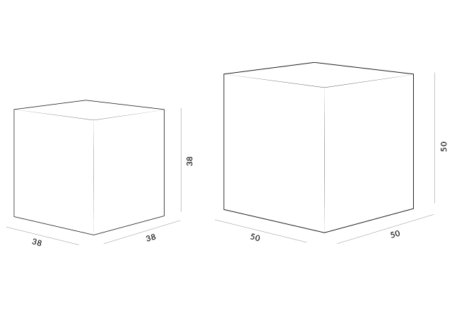 38 cm x 38 cm, wysokość 38 cm