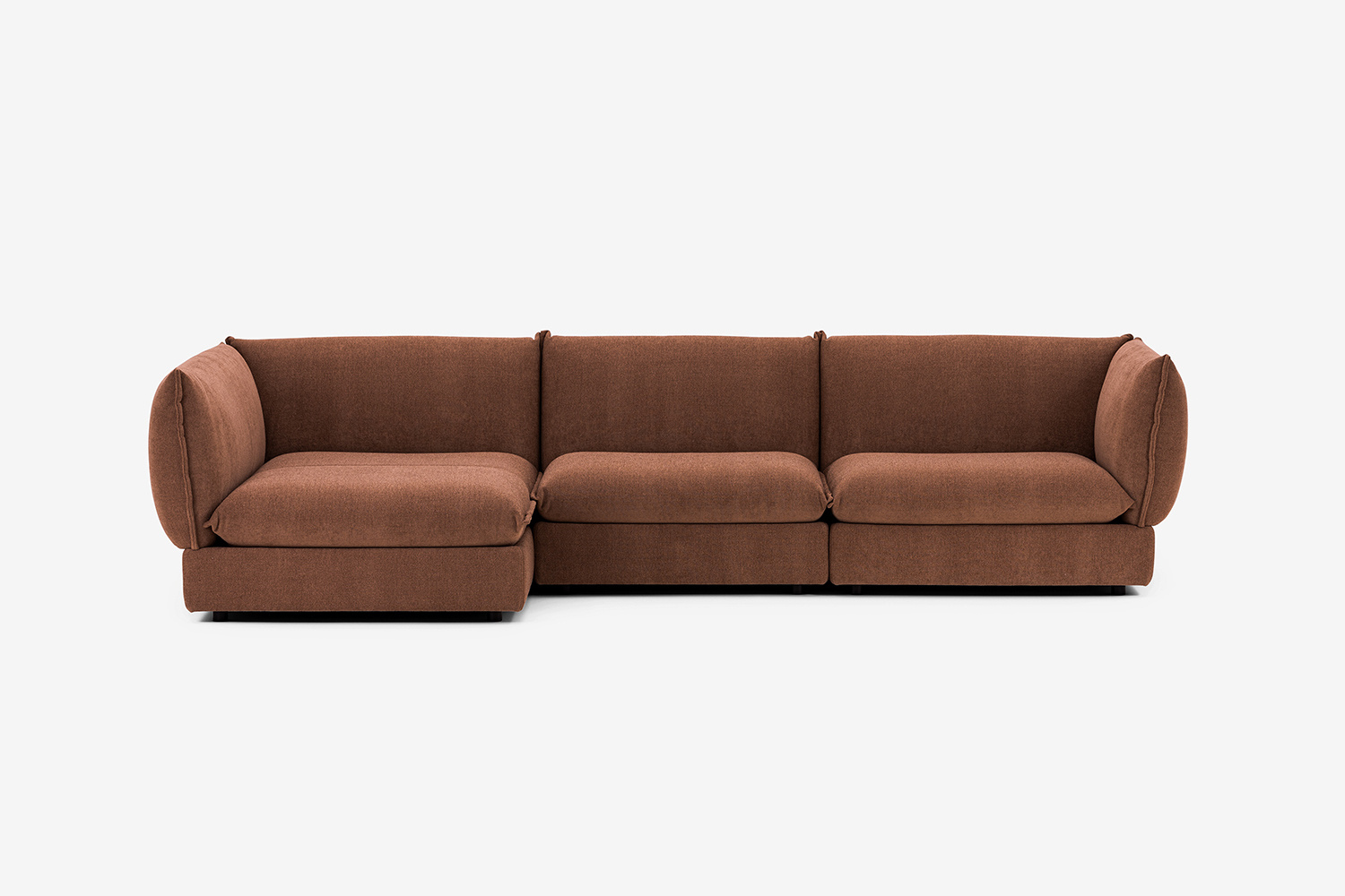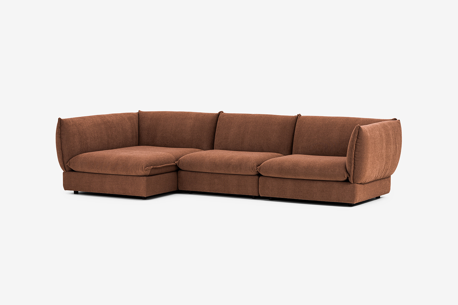 Kolekcja CUSHY jest modułowa, co umożliwia konfigurację dowolnego układu mebla. Elementy są w całości tapicerowane i wyposażone w zaciski typu krokodyl, które ułatwiają łączenie i rozdzielanie modułów.