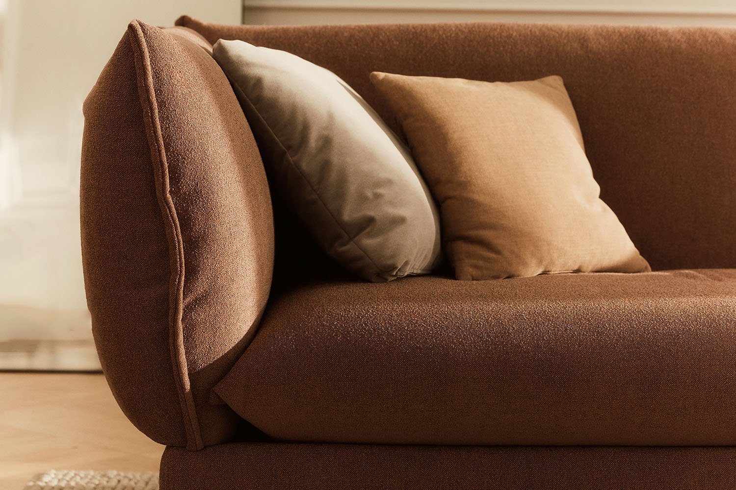 Podłokietnik w formie poduszki stanowi dodatkowe oparcie i urozmaica kszałt mebla.