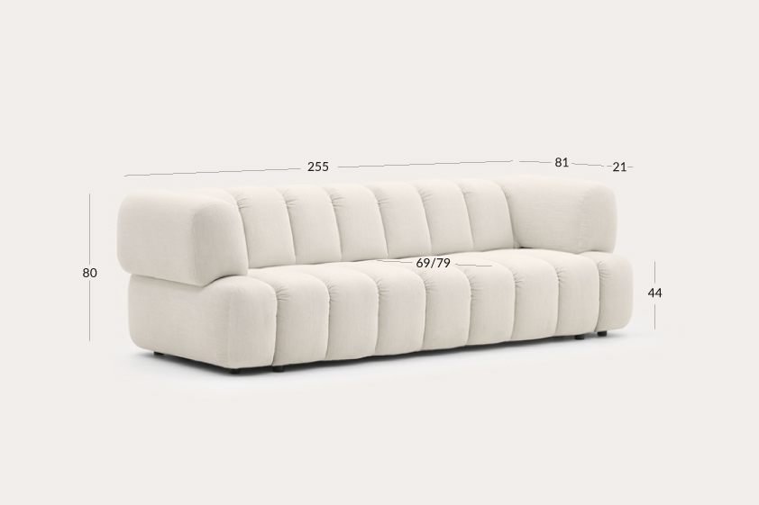 Zaledwie 4-centymetrowe nogi są prawie niewidoczne, dzięki czemu sofa sprawia wrażenie, jakby unosiła się w powietrzu.