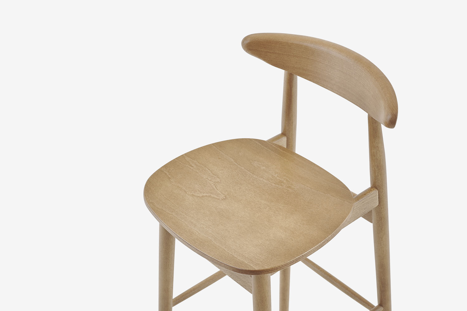 Proste drewniane nogi wraz z podstawą oraz subtelnie zaokrąglony kształt oparcia nadają meblu wyjątkowy charakter.