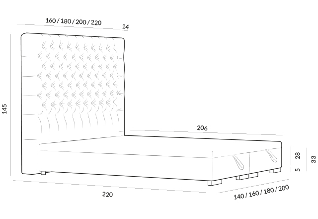 140 x 200 cm / 160 x 200 cm / 180 x 200 cm / 200 x 200 cm