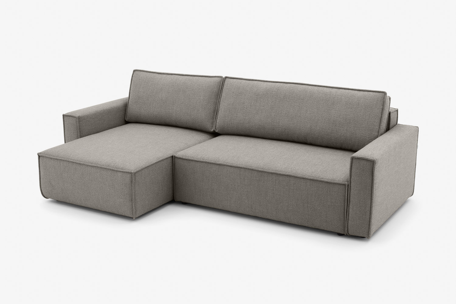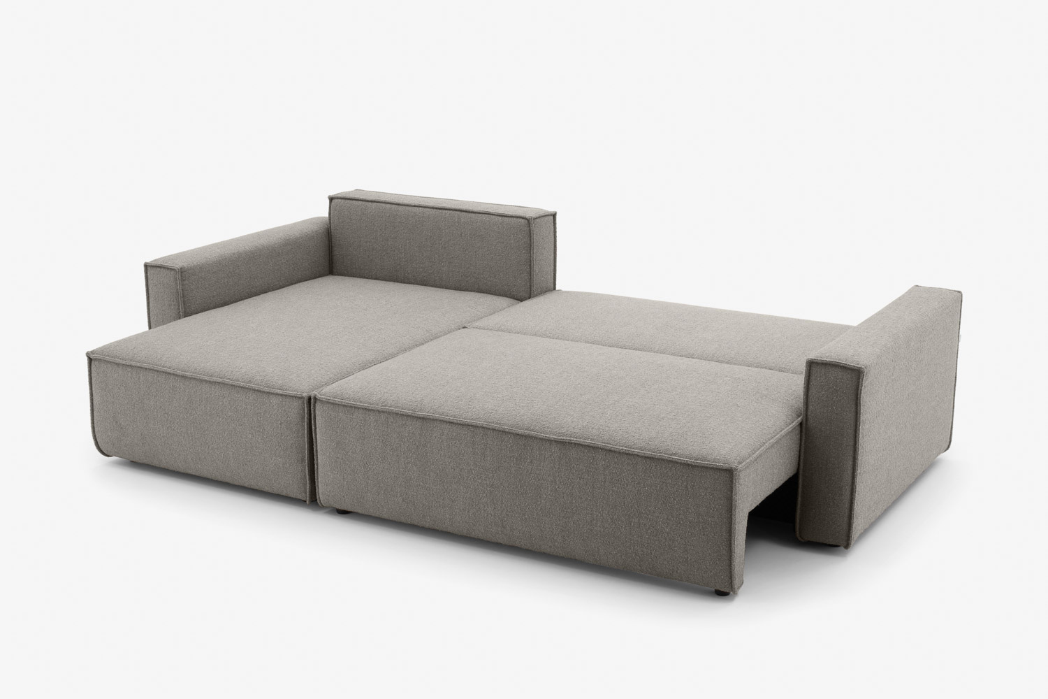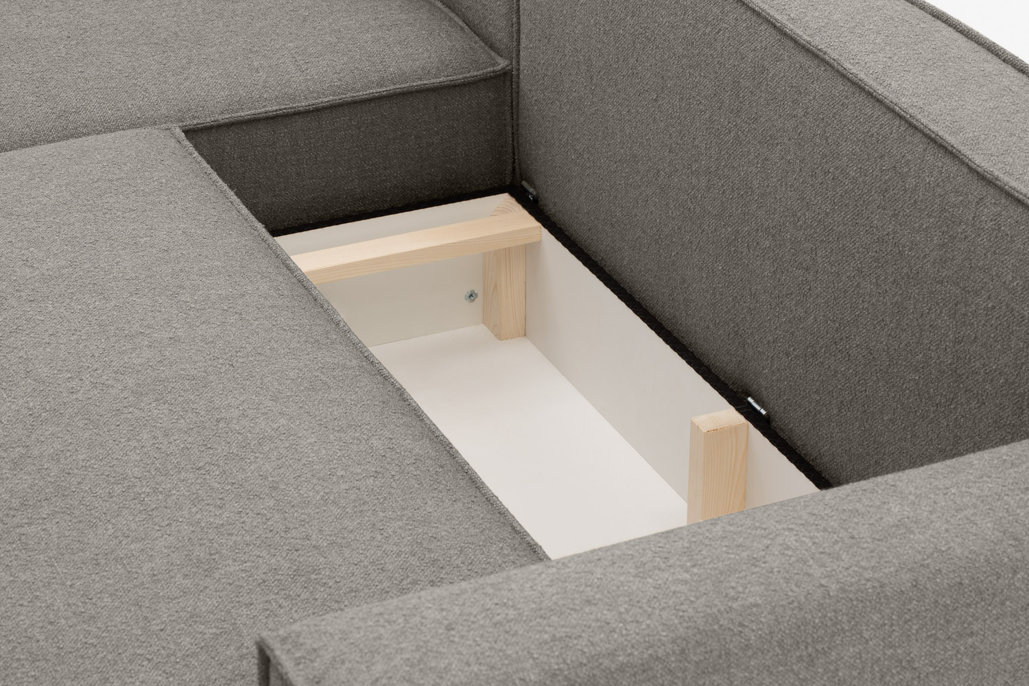 Zaletą narożnika w systemie rozkładania DL jest funkcjonalne wykorzystanie przestrzeni pod siedziskiem, gdzie kryje się duży i pojemny schowek na pościel.