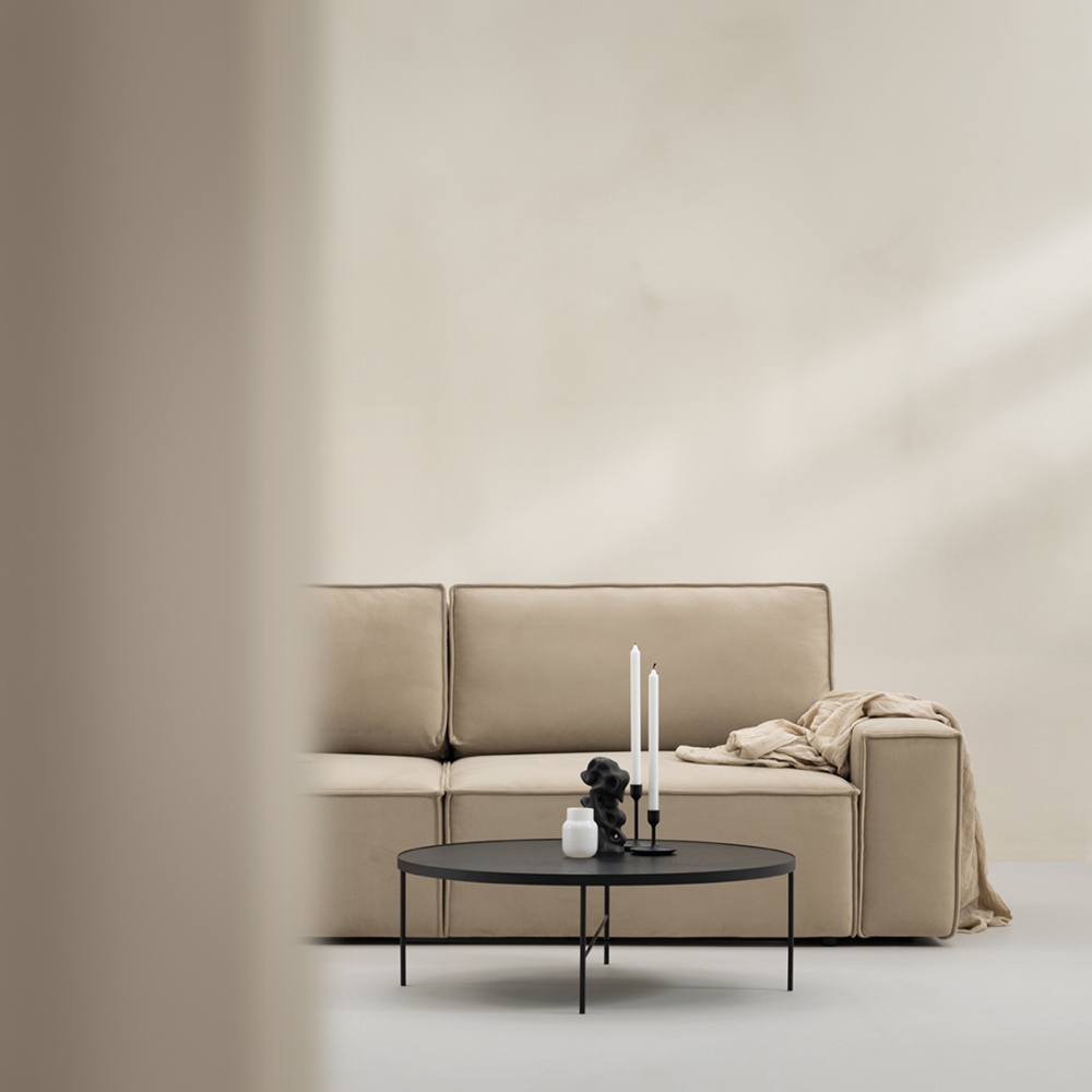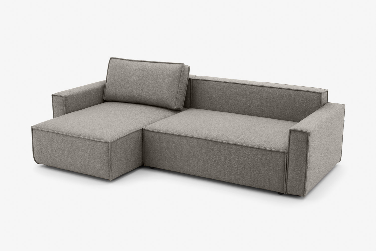 Zaledwie 3-centymetrowe nogi narożnika są prawie niedostrzegalne, dzięki czemu mebel sprawia wrażenie, jakby delikatnie unosił się w powietrzu.