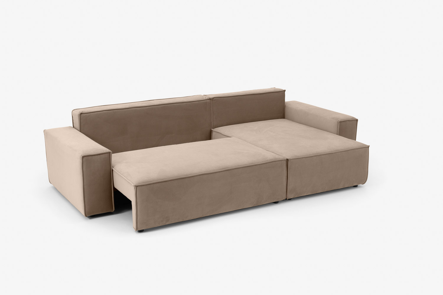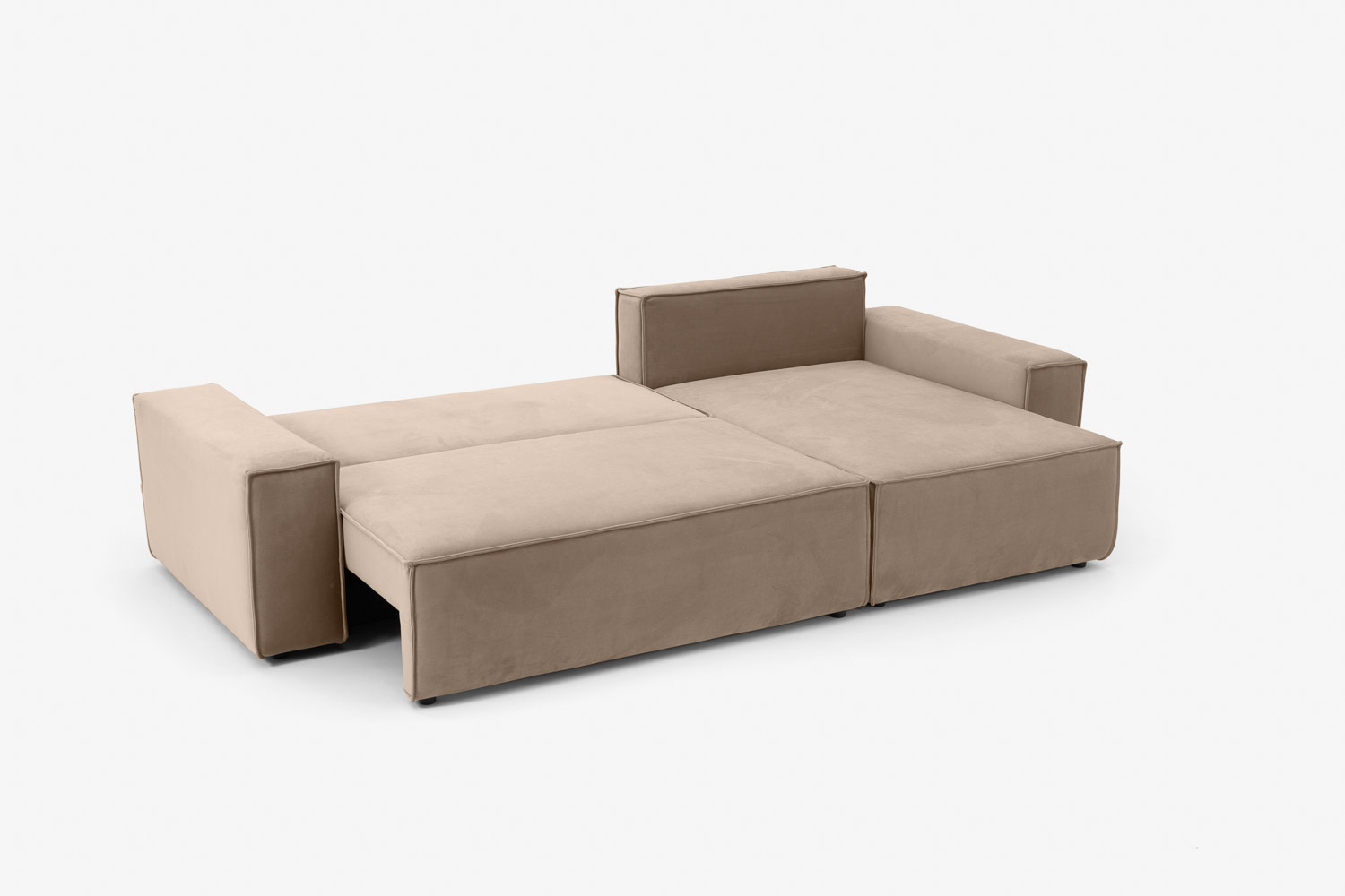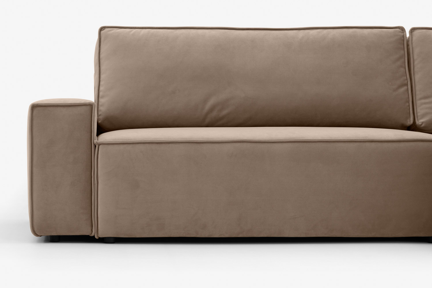 Zaledwie 3-centymetrowe nogi narożnika są prawie niedostrzegalne, dzięki czemu mebel sprawia wrażenie, jakby delikatnie unosił się w powietrzu.