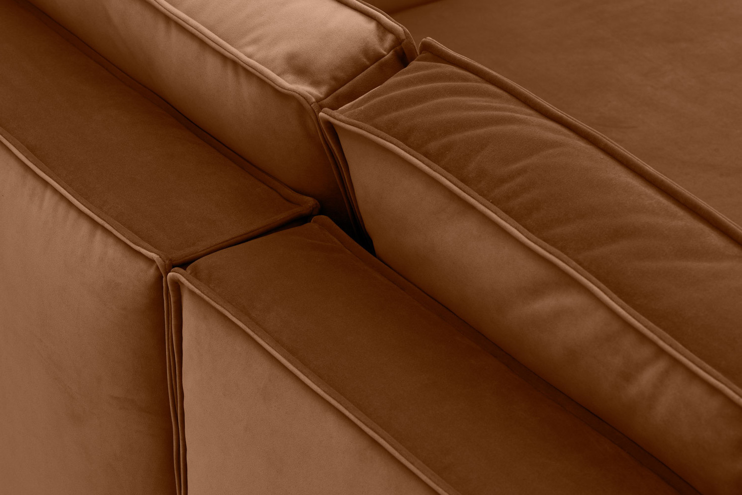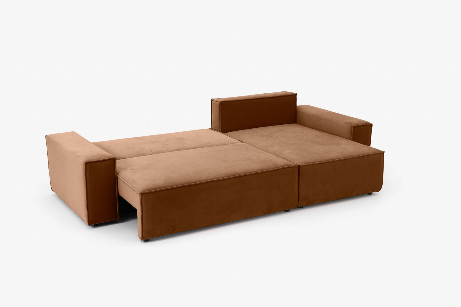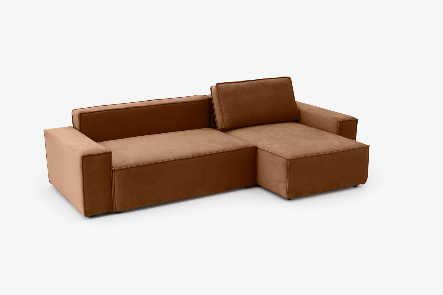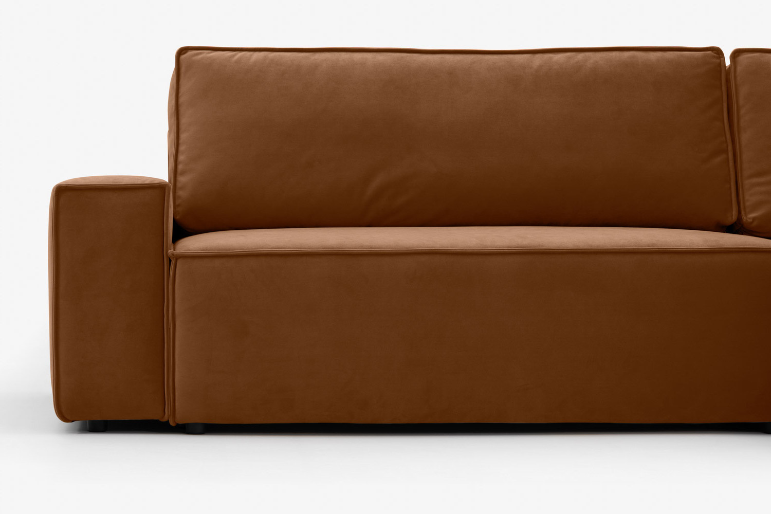 Zaledwie 3-centymetrowe nogi narożnika są prawie niedostrzegalne, dzięki czemu mebel sprawia wrażenie, jakby delikatnie unosił się w powietrzu.