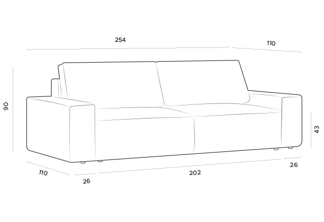 Zaledwie 3-centymetrowe nogi sofy są prawie niedostrzegalne, dzięki czemu mebel sprawia wrażenie, jakby delikatnie unosił się w powietrzu.