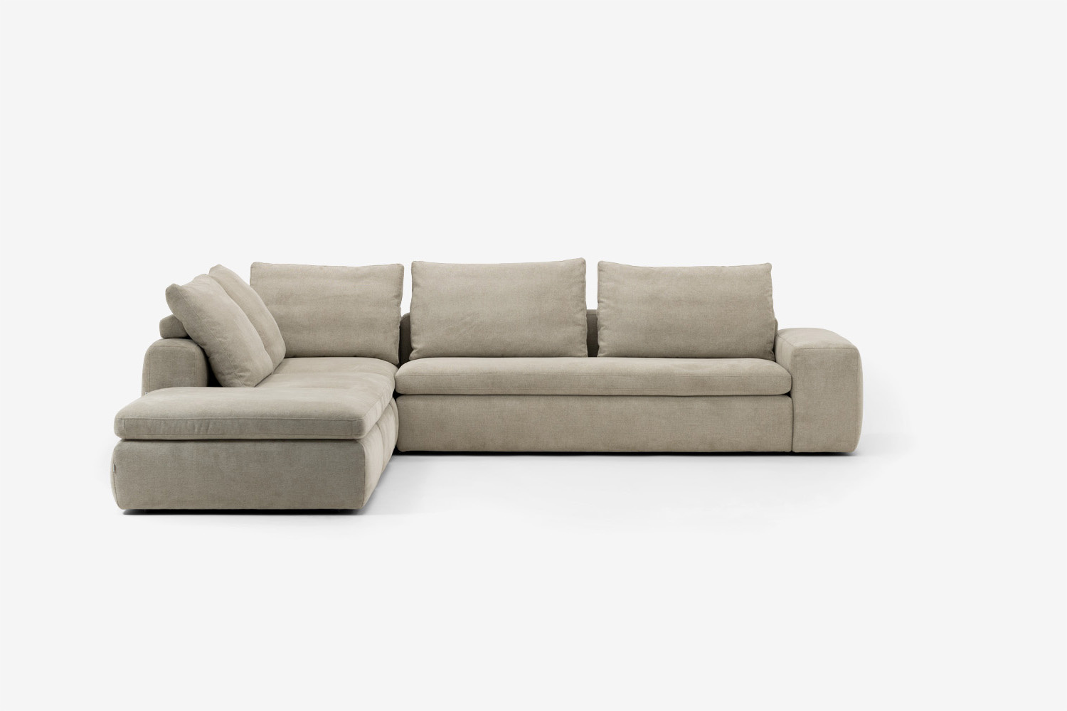 Zaledwie 4-centymetrowe nogi są prawie niewidoczne, dzięki czemu sofa narożna sprawia wrażenie, jakby unosiła się w powietrzu.