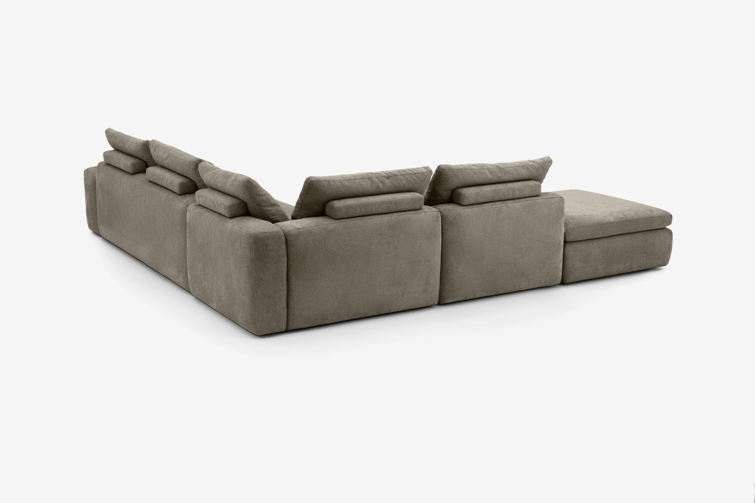 Zaledwie 4-centymetrowe nogi są prawie niewidoczne, dzięki czemu sofa narożna sprawia wrażenie, jakby unosiła się w powietrzu.