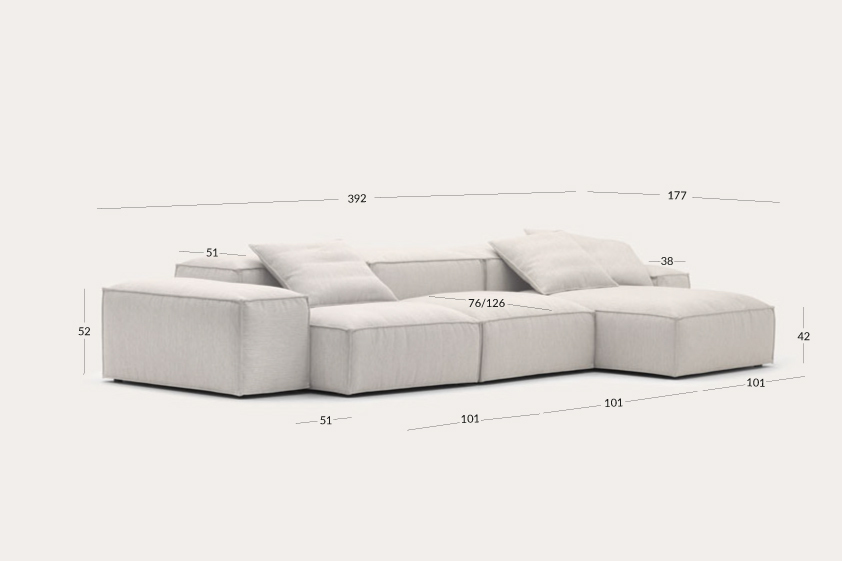 Za sprawą głębokiego siedziska i obszernych poduszek oparciowych kolekcja staje się we wnętrzu prawdziwą wyspą relaksu, na której możesz wypoczywać na wiele sposobów.