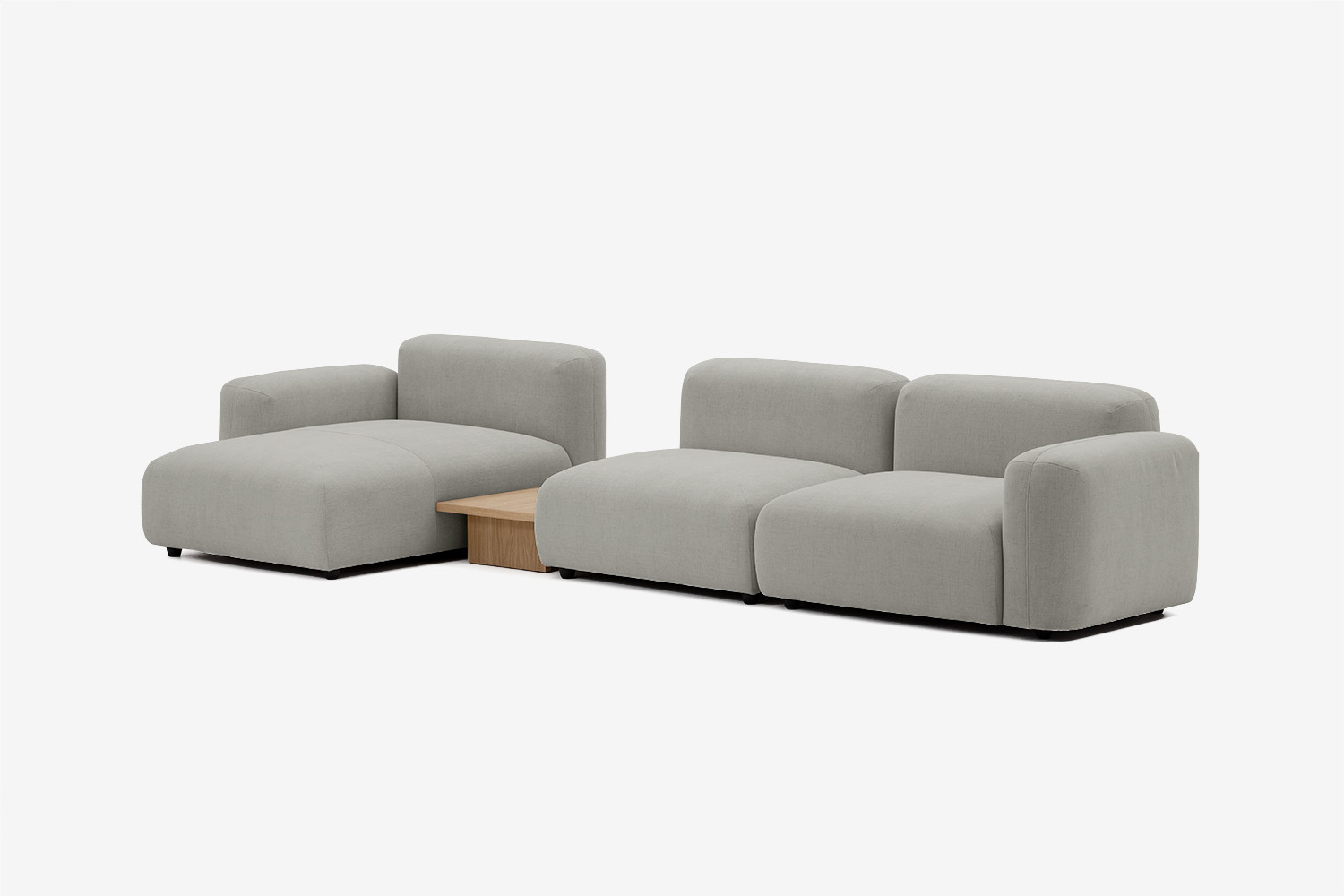 W skład kolekcji wchodzą stoliki wykonane z forniru dębowego, które można połączyć z tapicerowanymi elementami kolekcji oraz stolik kawowy, który idealnie uzupełnia aranżację salonu.