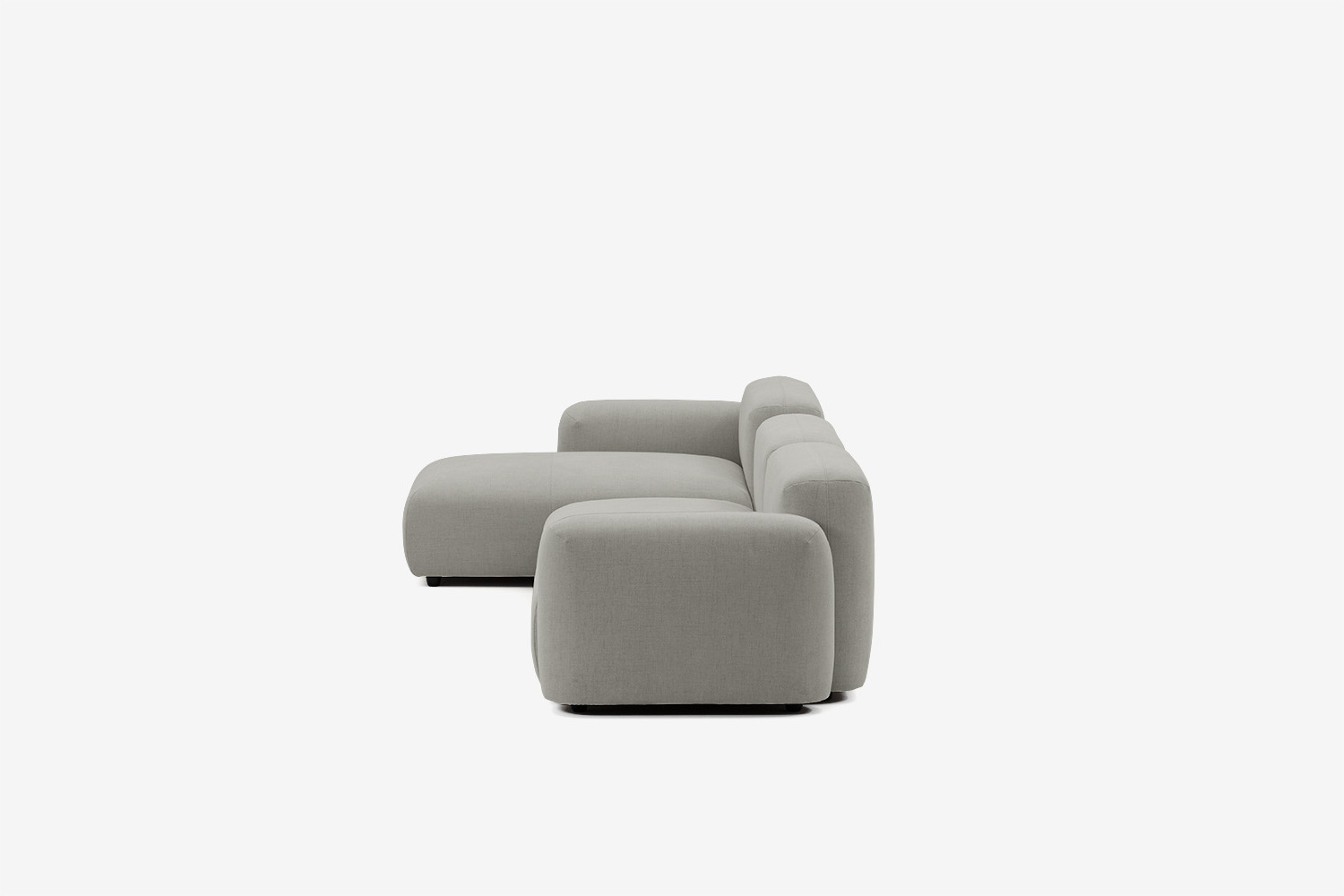 Zaledwie 4-centymetrowe nogi są prawie niewidoczne, dzięki czemu sofa narożna sprawia wrażenie, jakby unosiła się w powietrzu.
