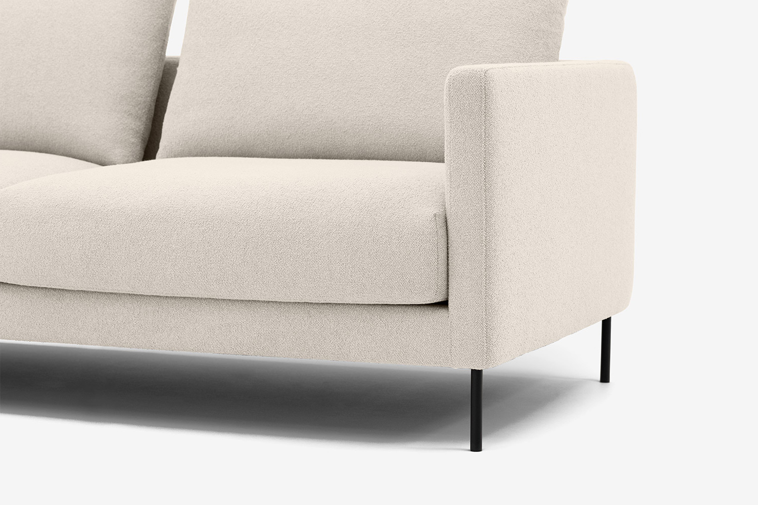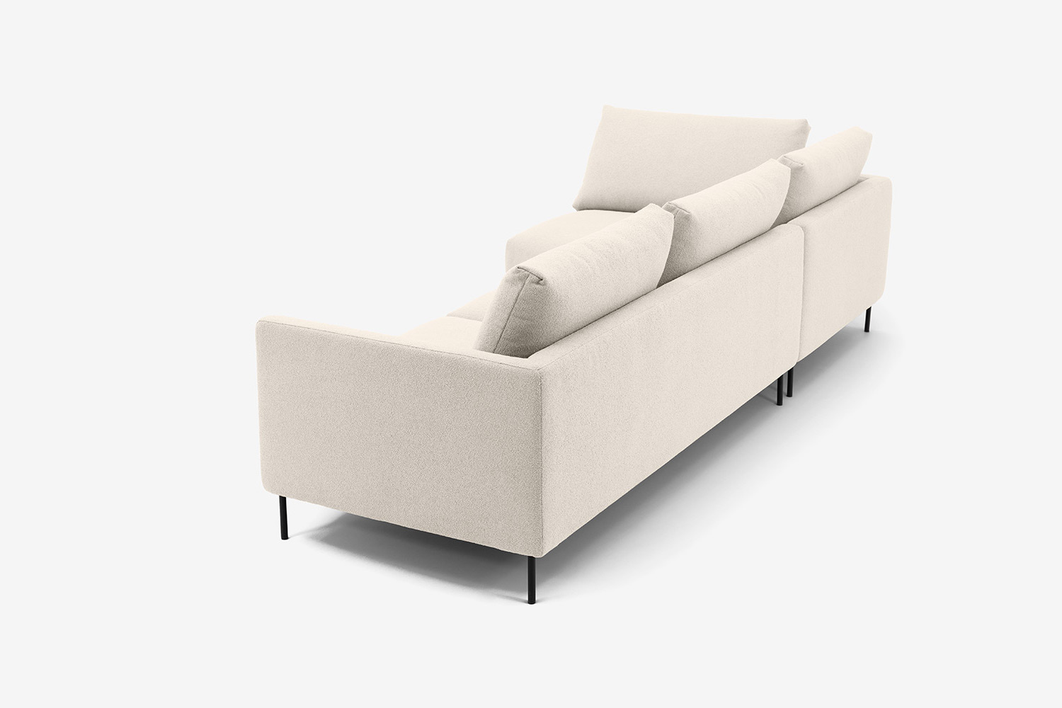 Nogi narożnika wykonane są z metalu w kolorze czarnym, a dzięki ich wysokości, sprzątanie pod meblem jest łatwe i przyjemne. Bardzo korzystnie wpływa to na prostotę codziennego użytkowania, ale również dodaje mu elegancji.