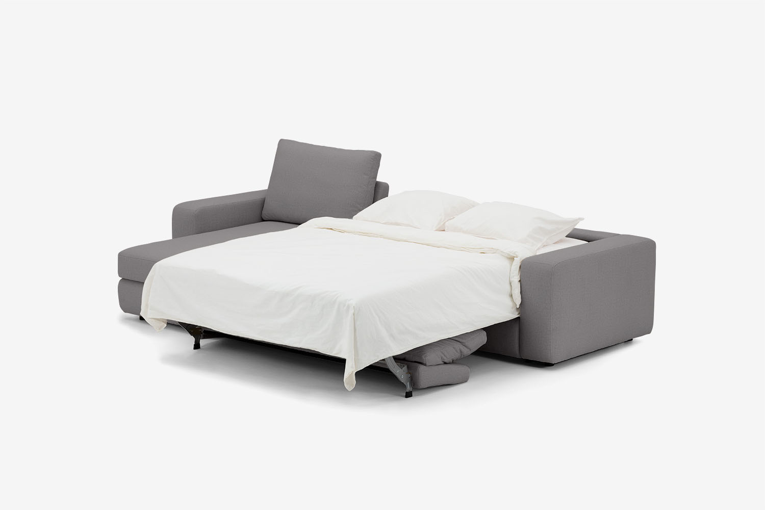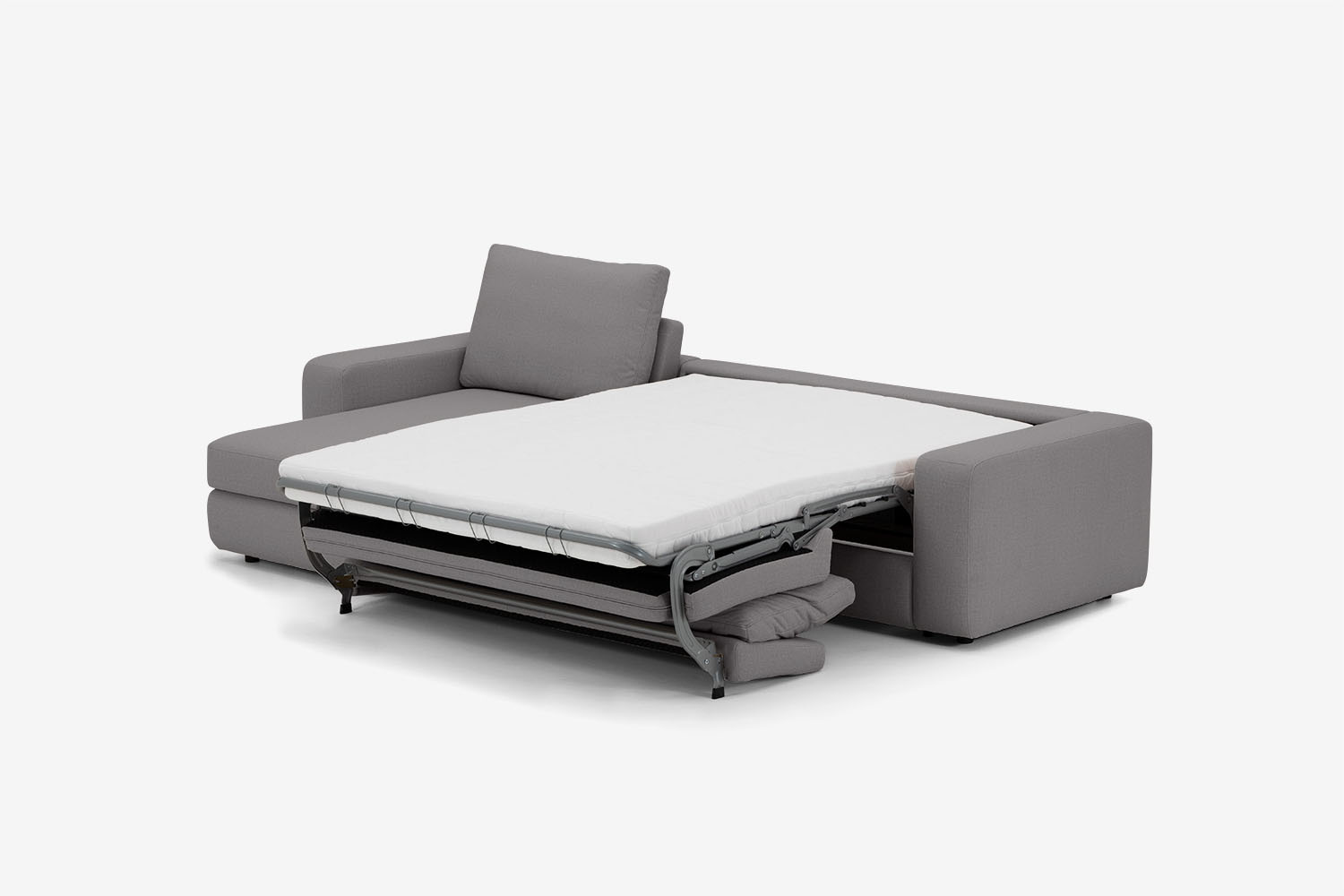 Sofa dzięki włoskiemu systemowi rozkładania jednym ruchem zamienia się w łóżko wyposażone w materac wypełniony pianką wysokoelastyczną.