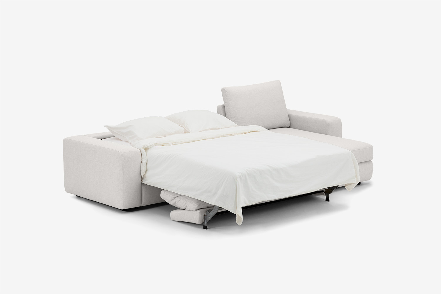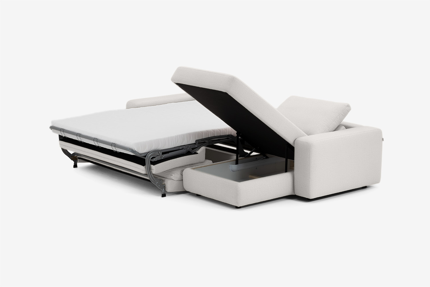 Sofa dzięki włoskiemu systemowi rozkładania jednym ruchem zamienia się w łóżko wyposażone w materac wypełniony pianką wysokoelastyczną.
