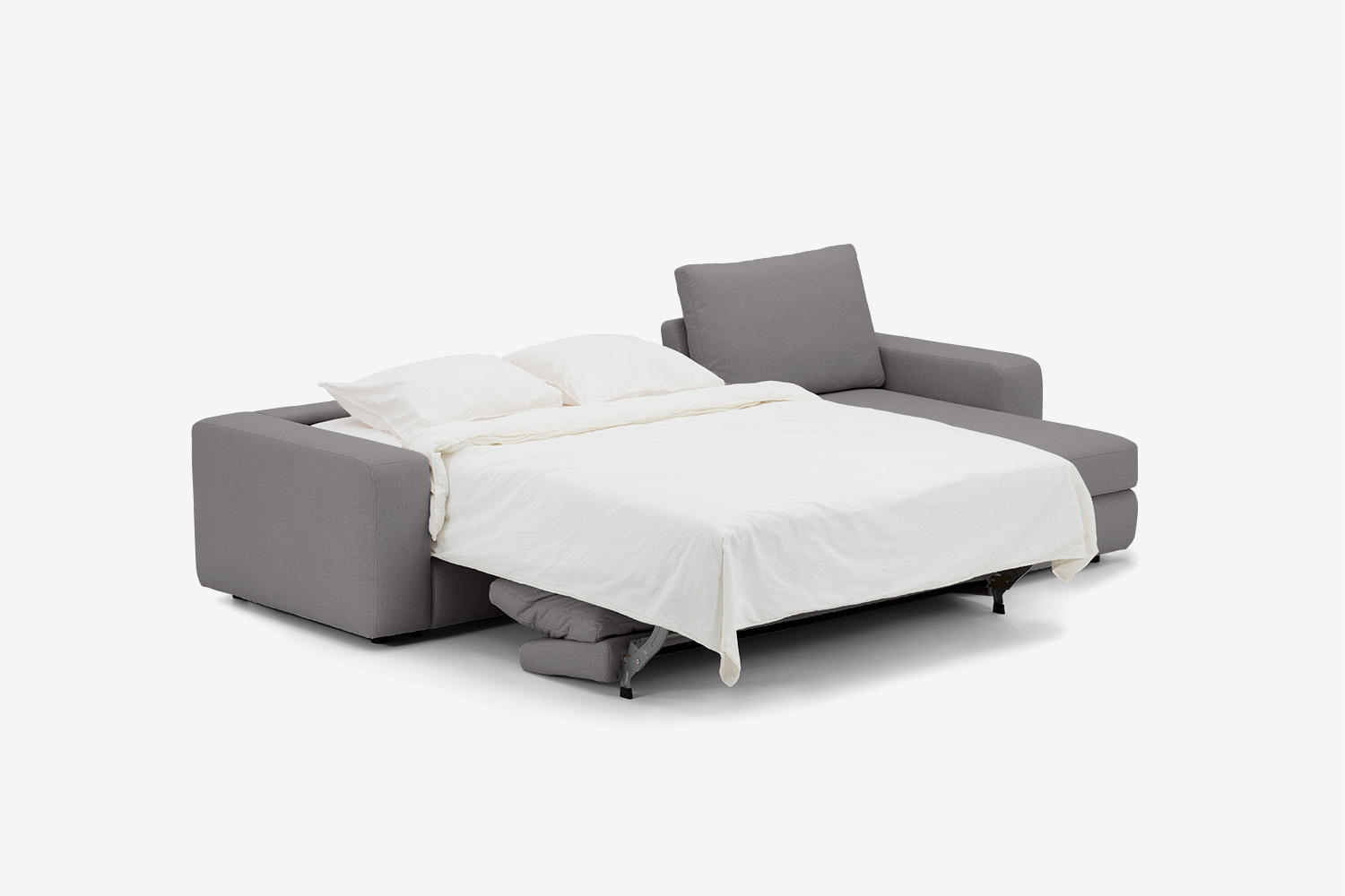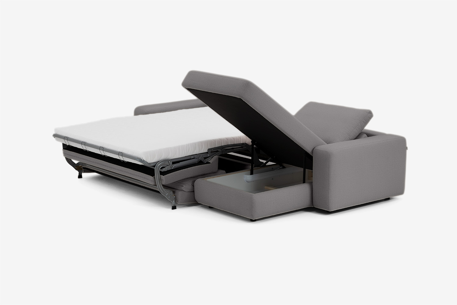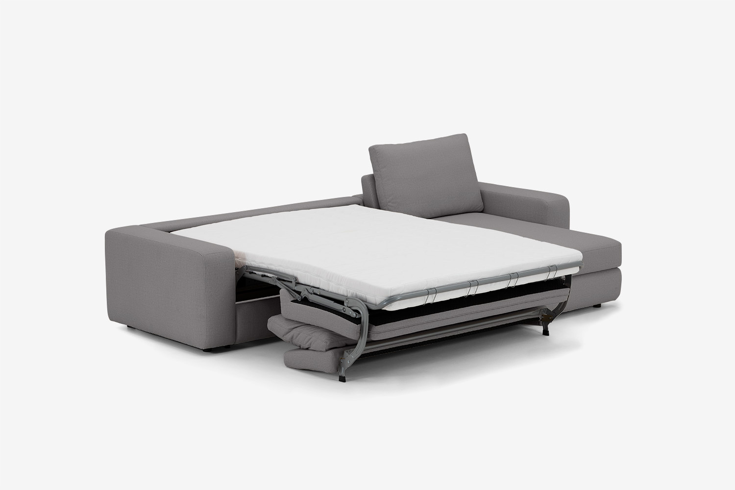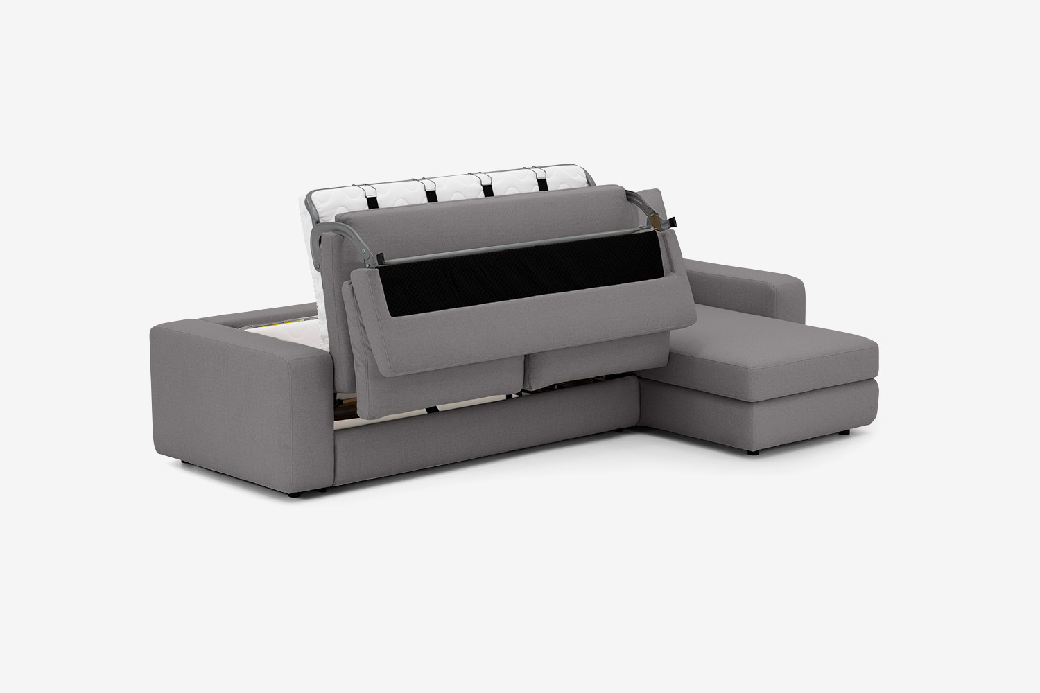 Sofa dzięki włoskiemu systemowi rozkładania jednym ruchem zamienia się w łóżko wyposażone w materac wypełniony pianką wysokoelastyczną.