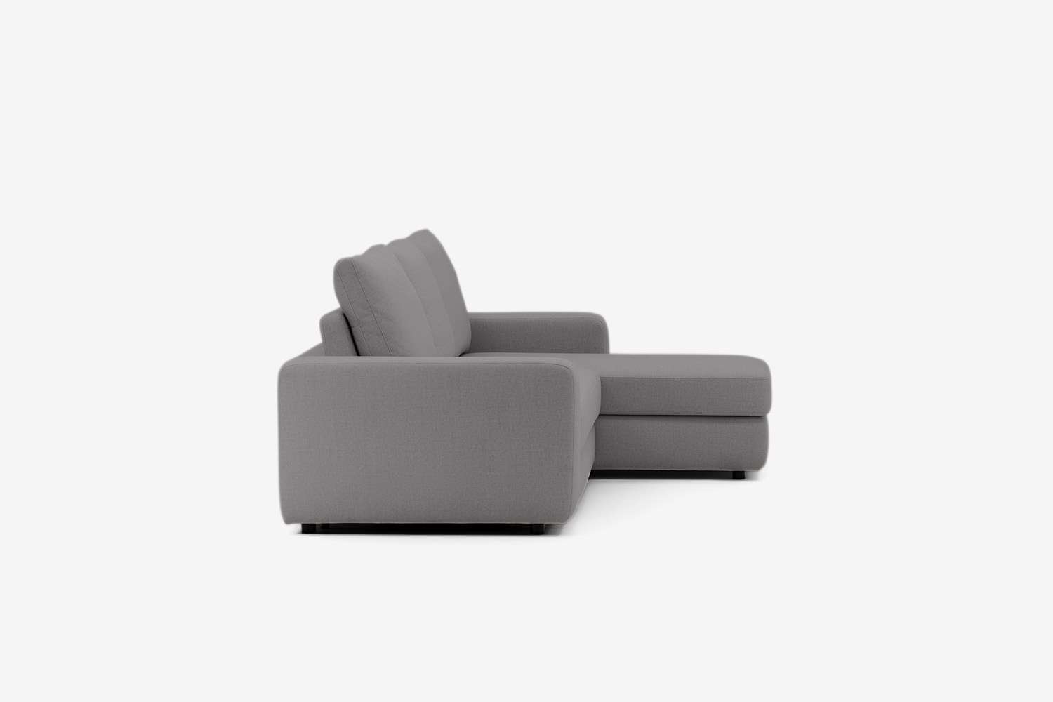 Zaledwie 4-centymetrowe nogi są prawie niewidoczne, dzięki czemu narożnik sprawia wrażenie, jakby unosił się w powietrzu.