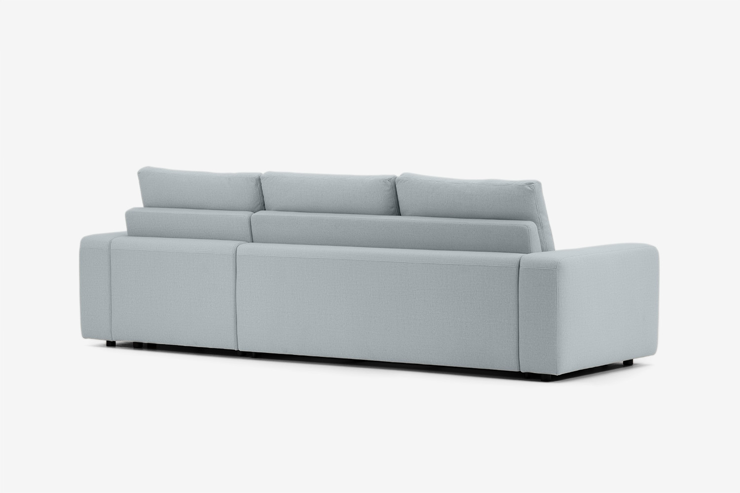 Zaledwie 4-centymetrowe nogi są prawie niewidoczne, dzięki czemu narożnik sprawia wrażenie, jakby unosił się w powietrzu.