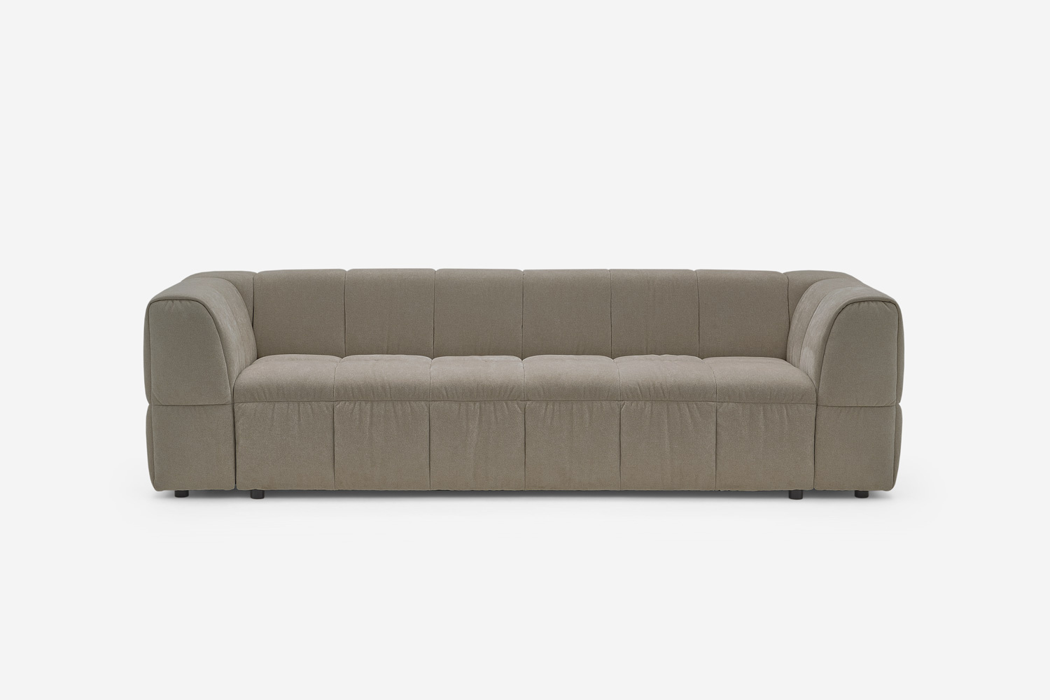 Zaledwie 4-centymetrowe nogi są prawie niewidoczne, dzięki czemu sofa sprawia wrażenie, jakby unosiła się w powietrzu.