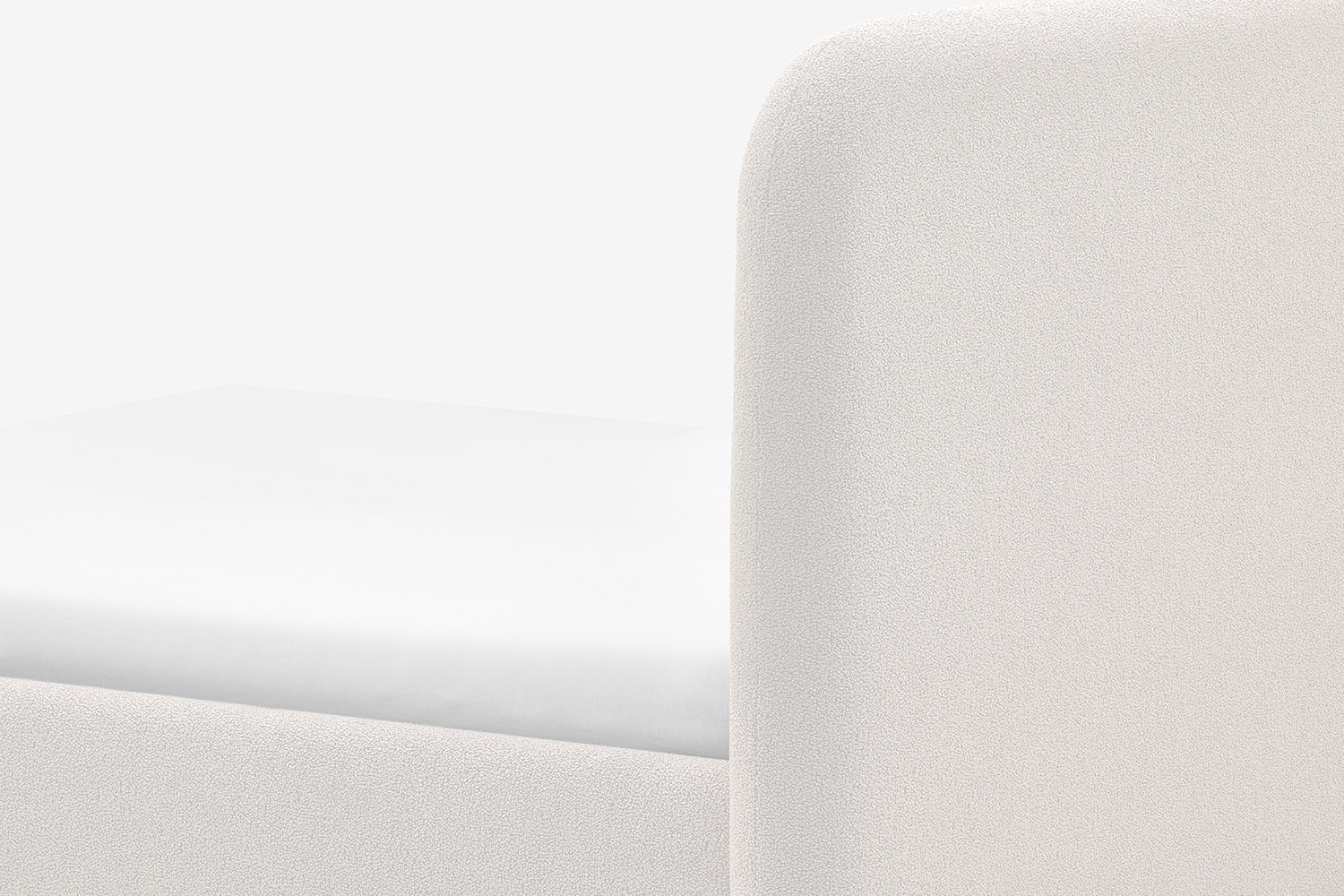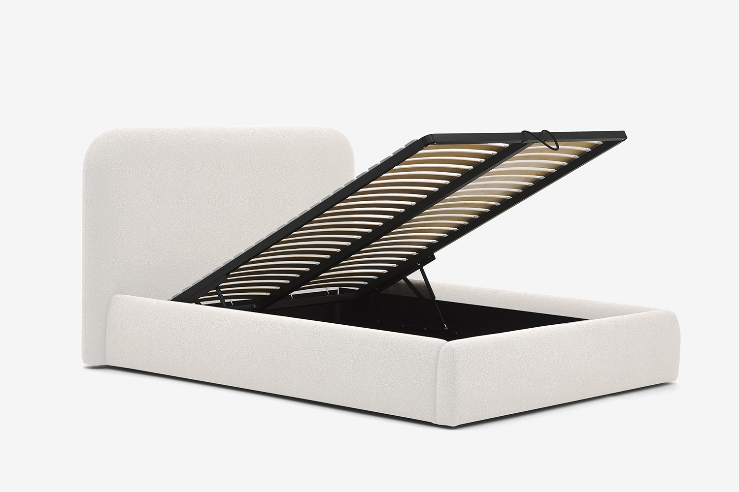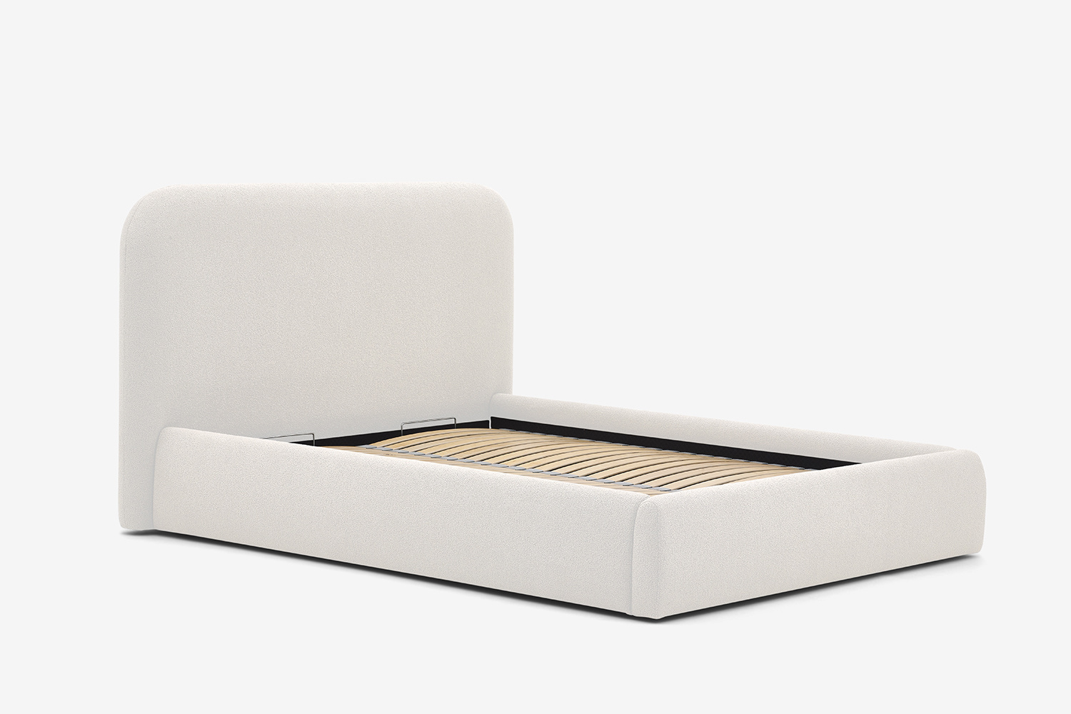 Zaledwie 4-centymetrowe nogi są prawie niewidoczne, dzięki czemu łóżko sprawia wrażenie, jakby unosiło się w powietrzu.