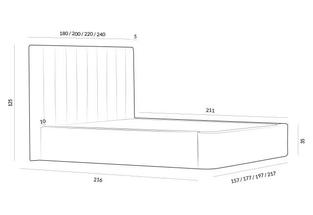 140 x 200 cm / 160 x 200 cm / 180 x 200 cm / 200 x 200 cm