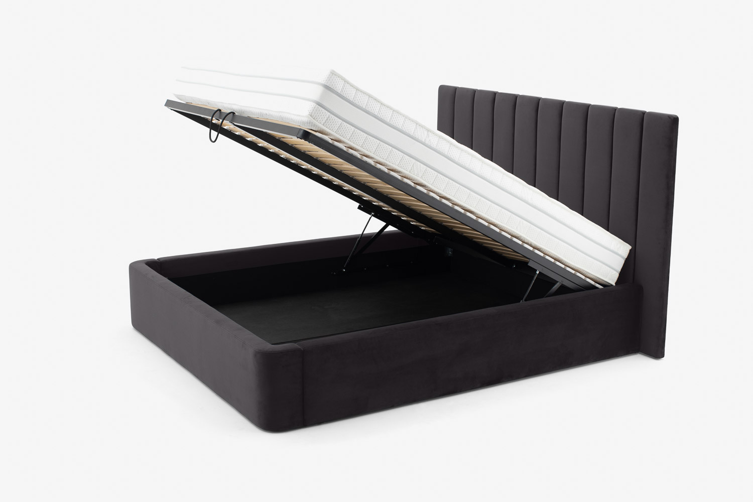 Zaletą łóżka jest funkcjonalne wykorzystanie przestrzeni pod meblem, gdzie kryje się duży i pojemny schowek na pościel.