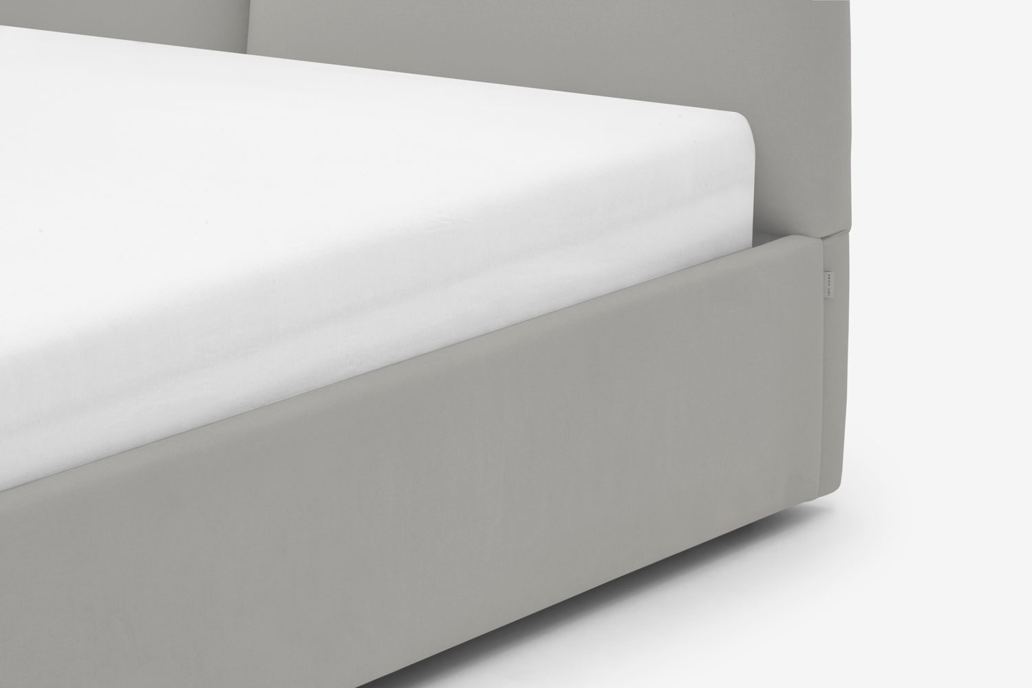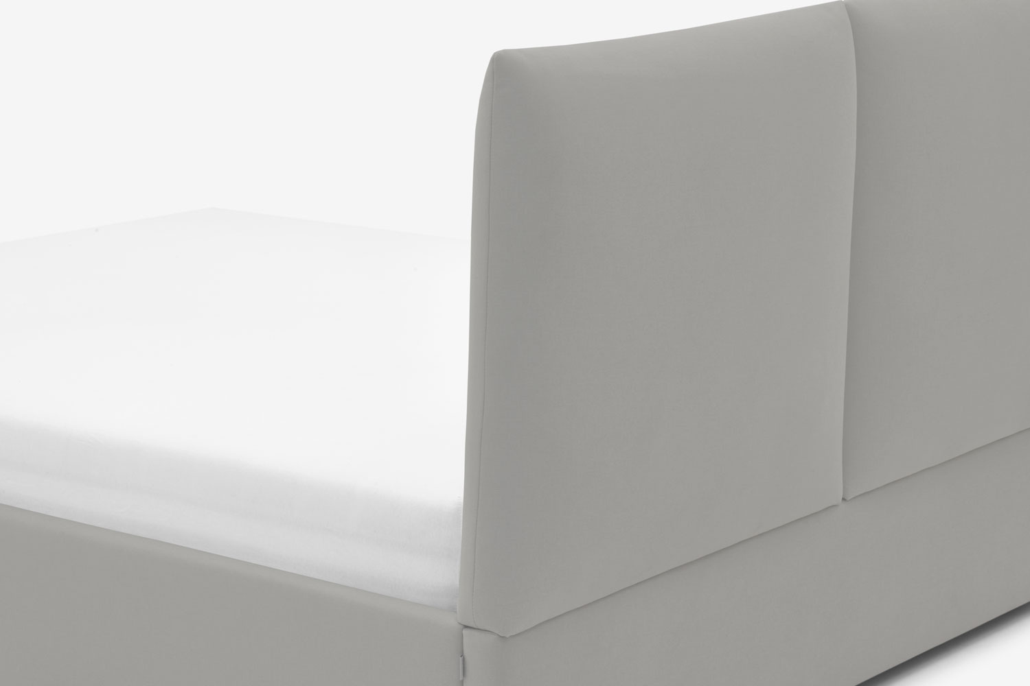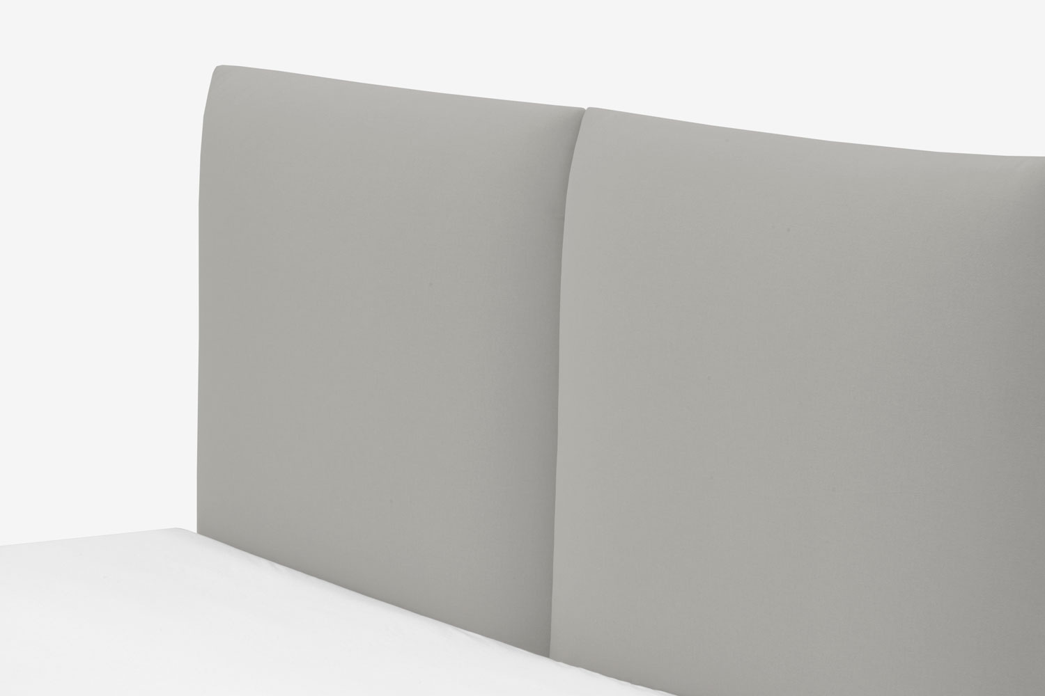 Zaletą łóżka jest wąski zagłówek, dzięki któremu model idealnie pasuje do małych i średnich sypialni. Wezgłowie w formie dwóch poduch oferuje miękkie wsparcie dla pleców i minimalistyczne wykończenie wnętrza.