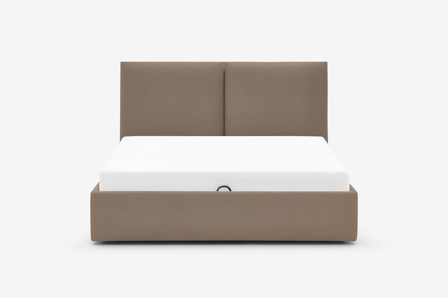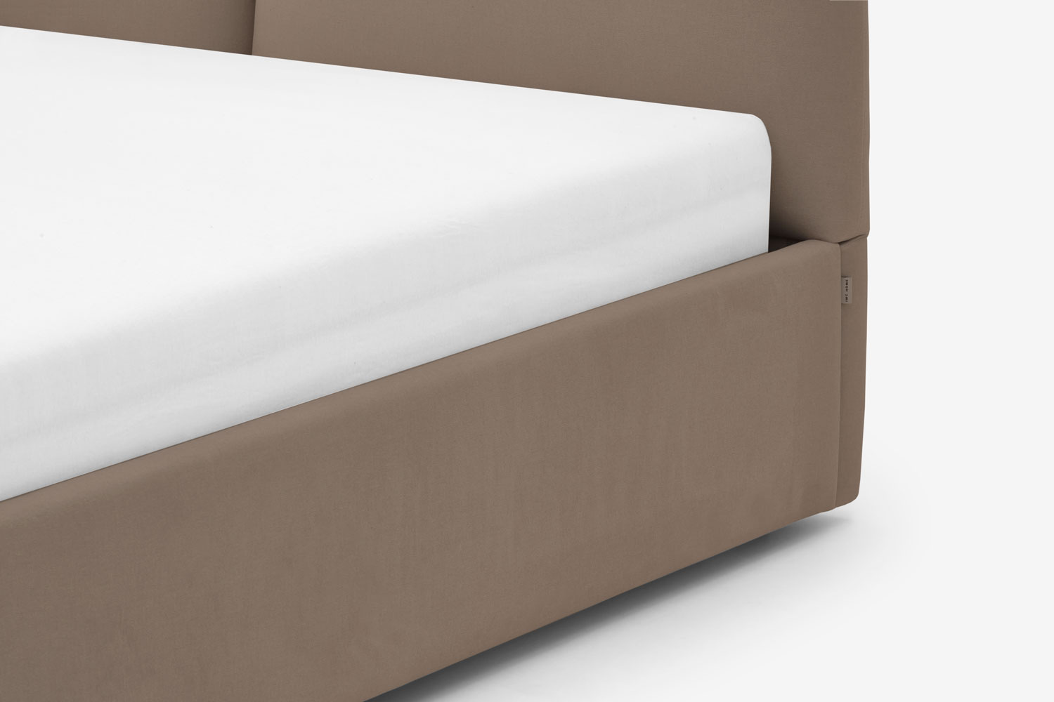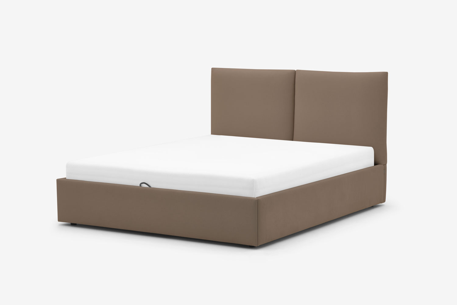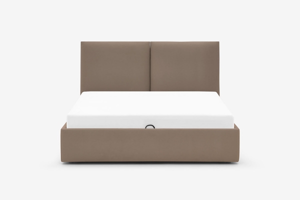 Zaletą łóżka jest wąski zagłówek, dzięki któremu model idealnie pasuje do małych i średnich sypialni. Wezgłowie w formie dwóch poduch oferuje miękkie wsparcie dla pleców i minimalistyczne wykończenie wnętrza.