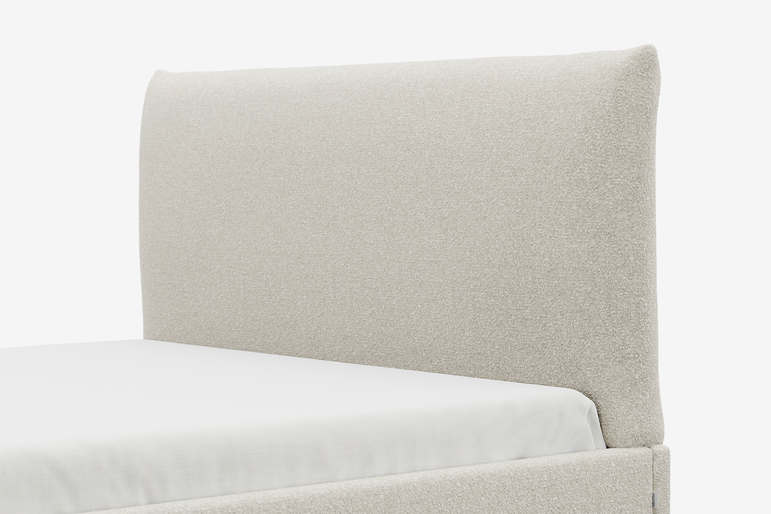Zaletą łóżka jest wąski zagłówek, dzięki któremu model idealnie pasuje do małych i średnich sypialni. Wezgłowie w formie dwóch poduch oferuje miękkie wsparcie dla pleców i minimalistyczne wykończenie wnętrza.