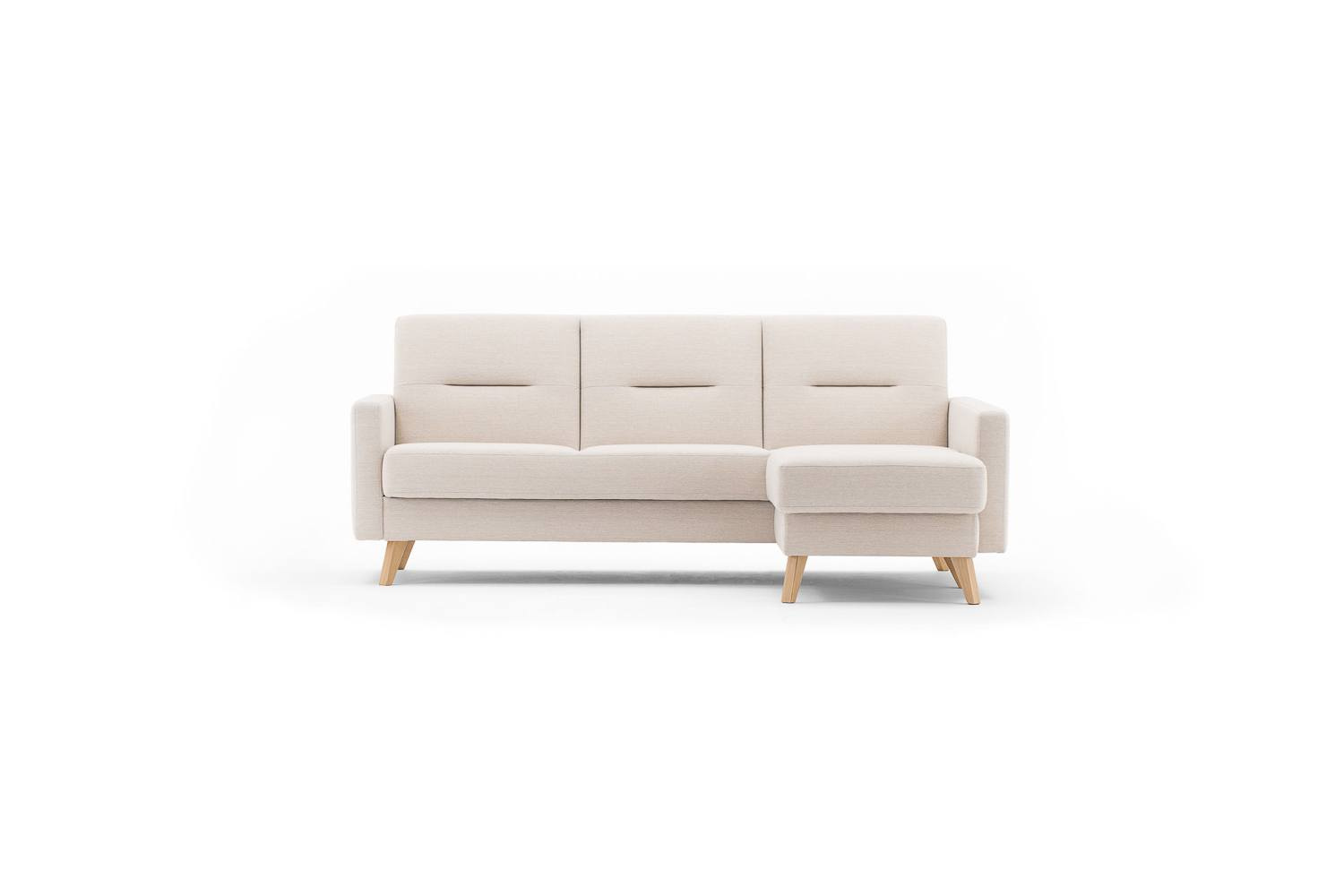 Stockholm to lekki i funkcjonalny narożnik w stylu skandynawskim. Posiada klasyczną funkcję spania "clic-clac", duży pojemnik na pościel oraz mały pojemnik na drobiazgi. Dodatkowej funkcjonalności dodaje dwudzielna kieszeń na jednym z podłokietników.