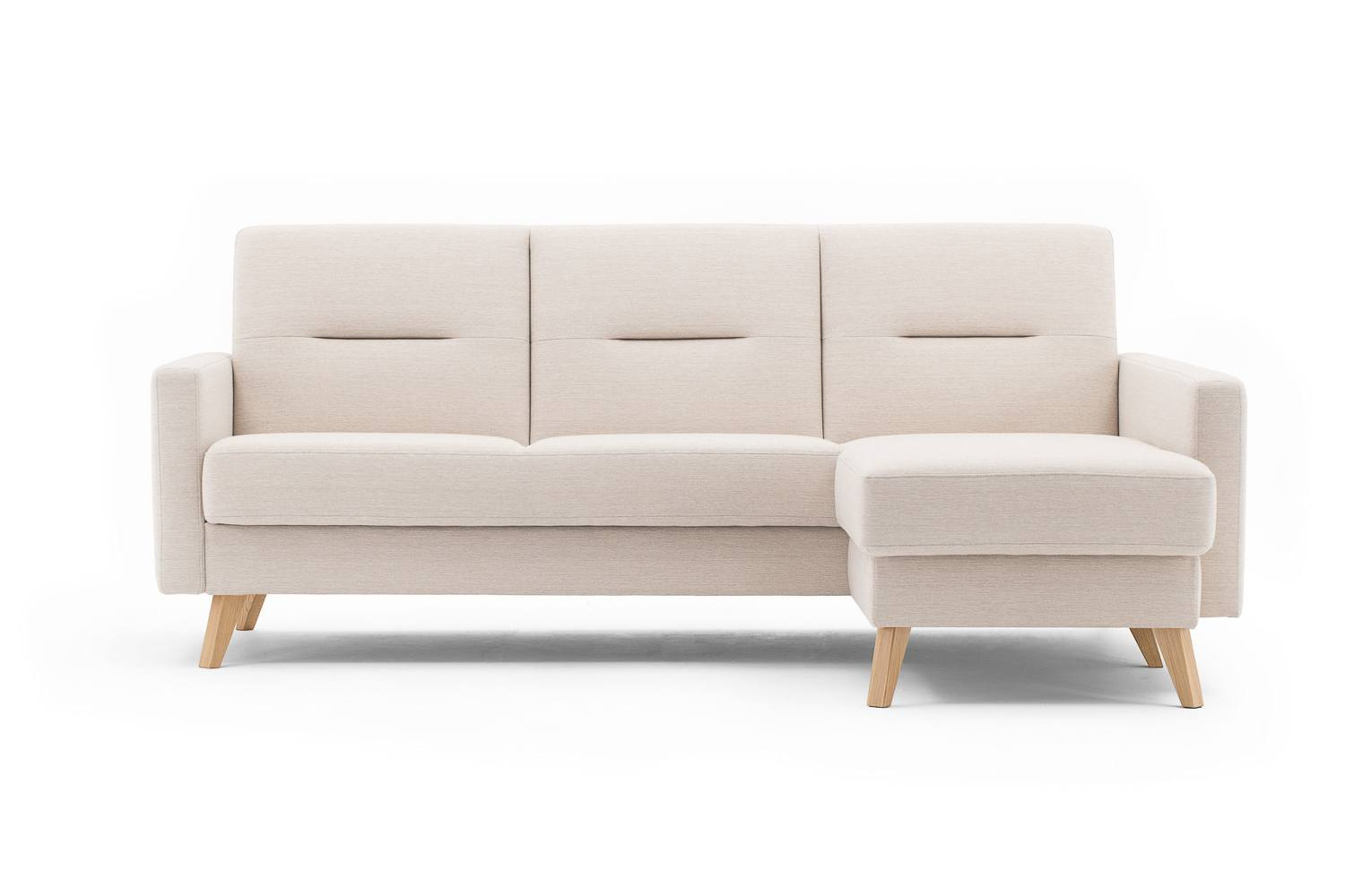 Stockholm to lekki i funkcjonalny narożnik w stylu skandynawskim. Posiada klasyczną funkcję spania "clic-clac", duży pojemnik na pościel oraz mały pojemnik na drobiazgi. Dodatkowej funkcjonalności dodaje dwudzielna kieszeń na jednym z podłokietników.