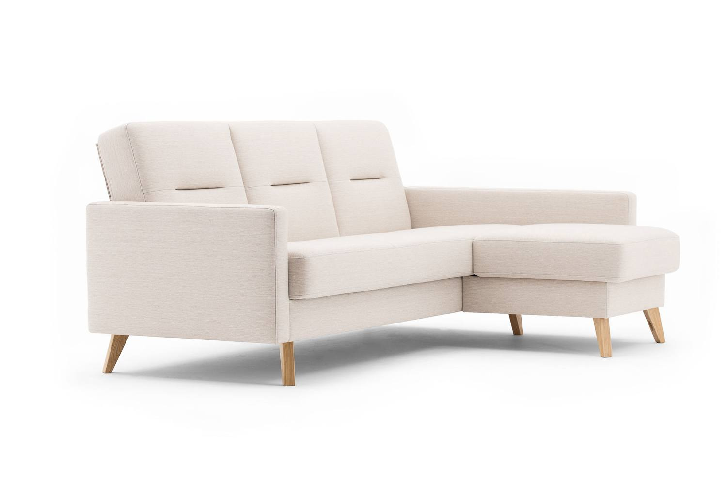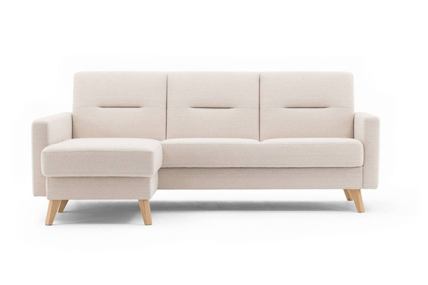 Stockholm to lekki i funkcjonalny narożnik w stylu skandynawskim. Posiada klasyczną funkcję spania "clic-clac", duży pojemnik na pościel oraz mały pojemnik na drobiazgi. Dodatkowej funkcjonalności dodaje dwudzielna kieszeń na jednym z podłokietników.