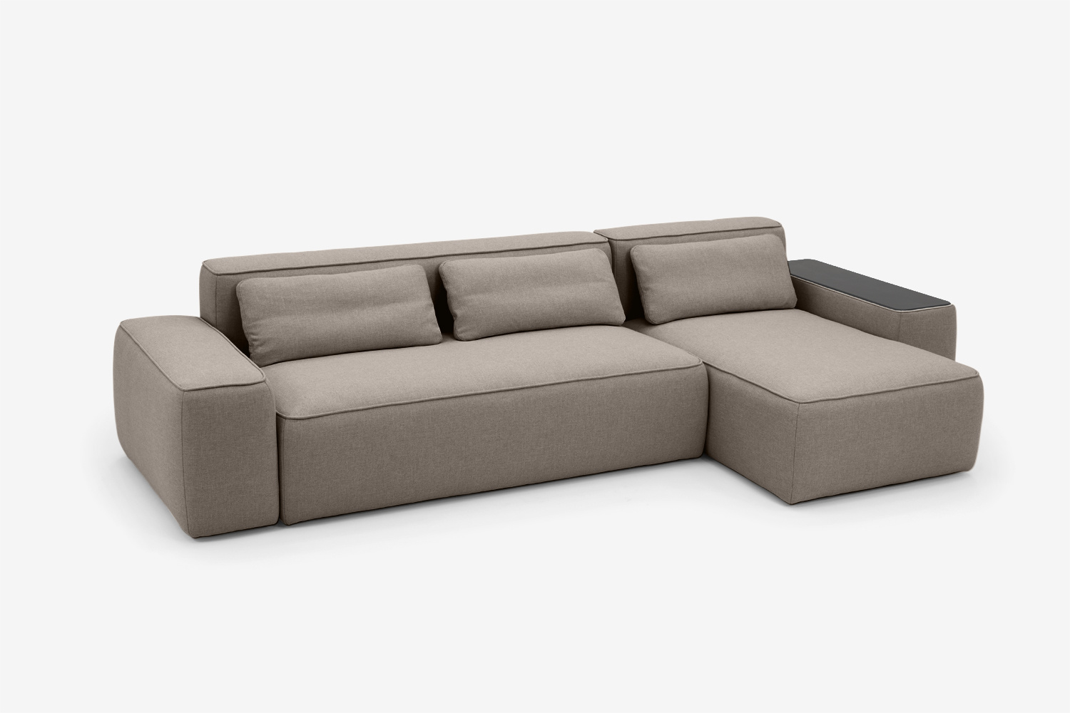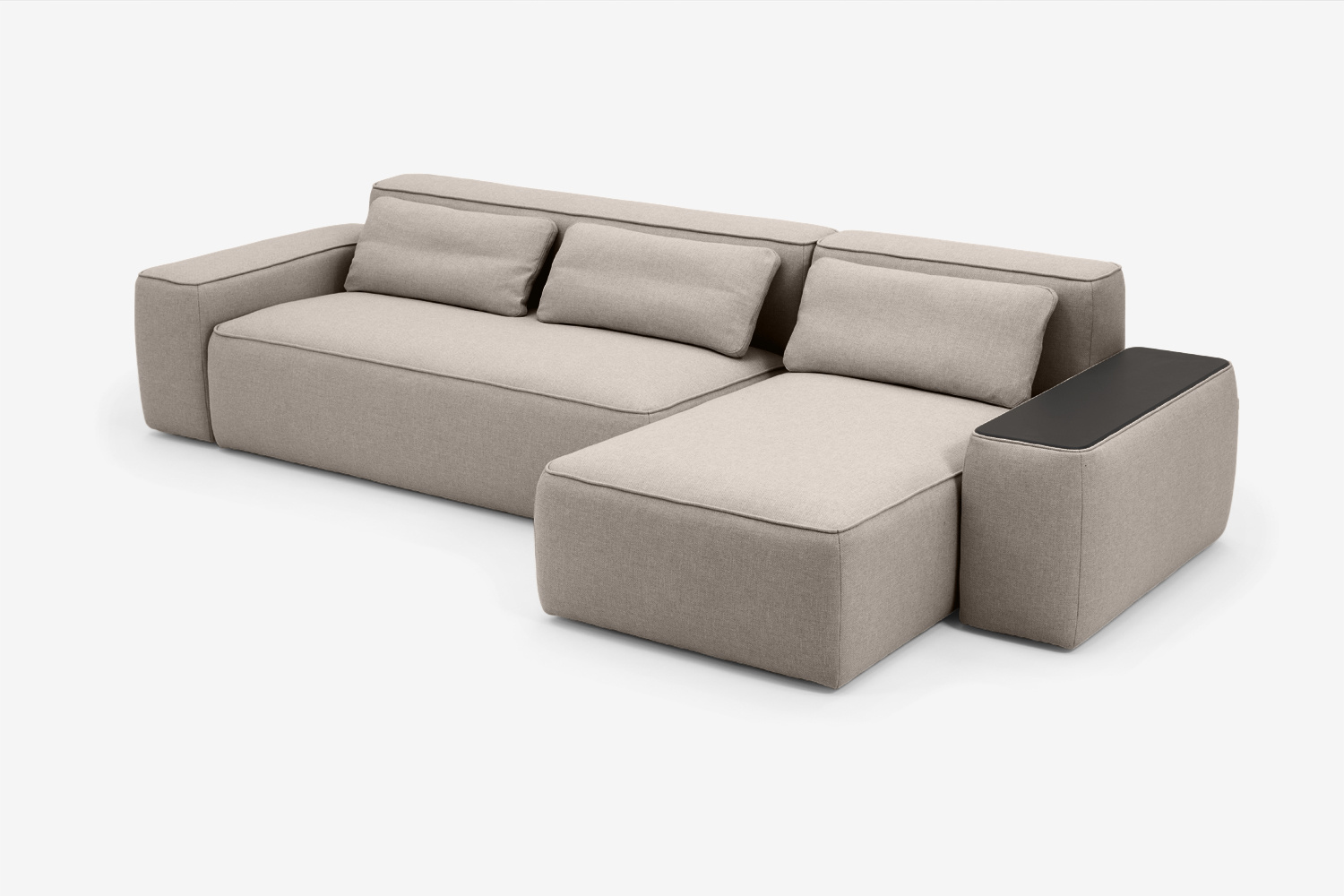 Szczególnym atutem jest funkcjonalny podłokietnik z blatem, który świetnie sprawdzi się pod laptop lub kubek z Twoim ulubionym napojem