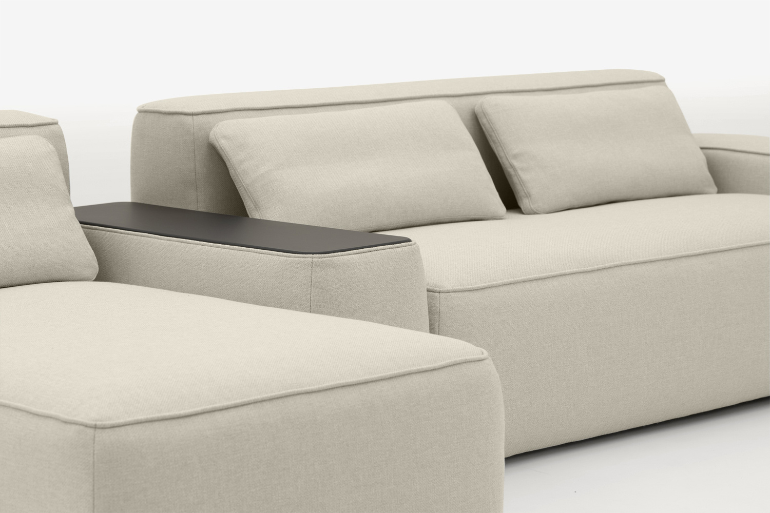 Zastosowanie dekoracyjnego szwu w każdym z modułów, podkreśla kształt oraz nadaje przytulny wygląd kolekcji