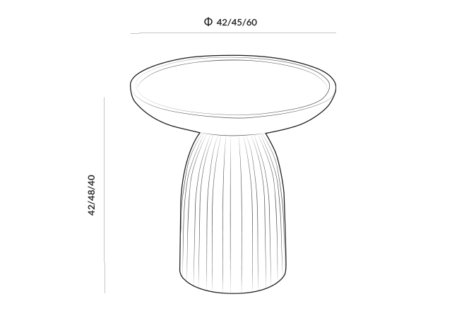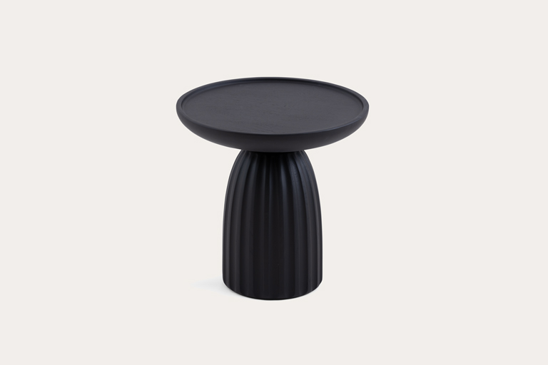 Stolik wyróżnia ryflowana, okrągła noga o zaoblonych krawędziach, która urozmaica kształt mebla.