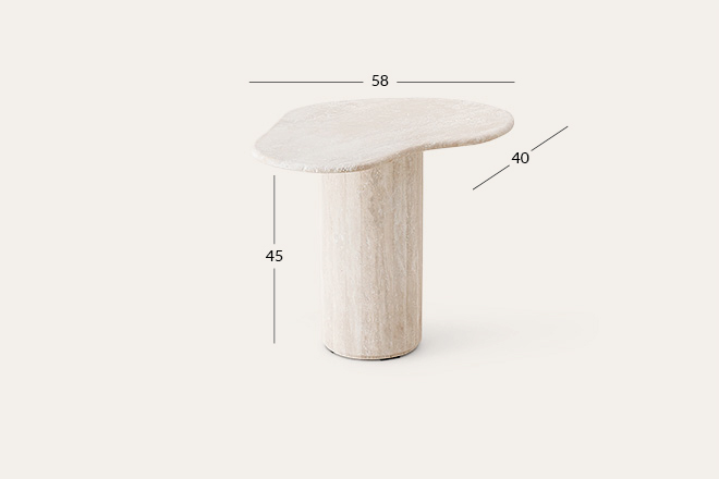 • TRAVI to stolik, który zostaje z Tobą na lata – w roli kawowego, bocznego w salonie czy nocnego przy łóżku. Wykuty w całości z trawertynu, zachwyca solidnością i charakterem.